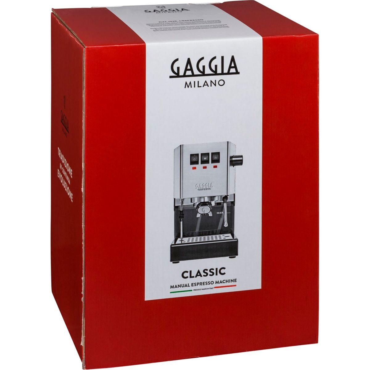 Die Classic Evo von Gaggia aus Edelstahl ist eine Siebträgermaschine, die bis zu 2 Tassen Kaffee gleichzeitig zubereiten kann. Der Siebträger ist kompatibel mit 3 verschiedenen Фільтри. Das Druckpumpensystem hat 15 Bar. Die Maschine ist geeignet für die Zubereitung von Espresso und Cappuccino. Neben Kaffeepulver können auch E.S.E. Pads genutzt werden. Der Wassertank hat ein Fassungsvermögen von 2,1 Litern Wasser. An der Seite befindet sich die Dampfdüse zum Aufschäumen der Milch.