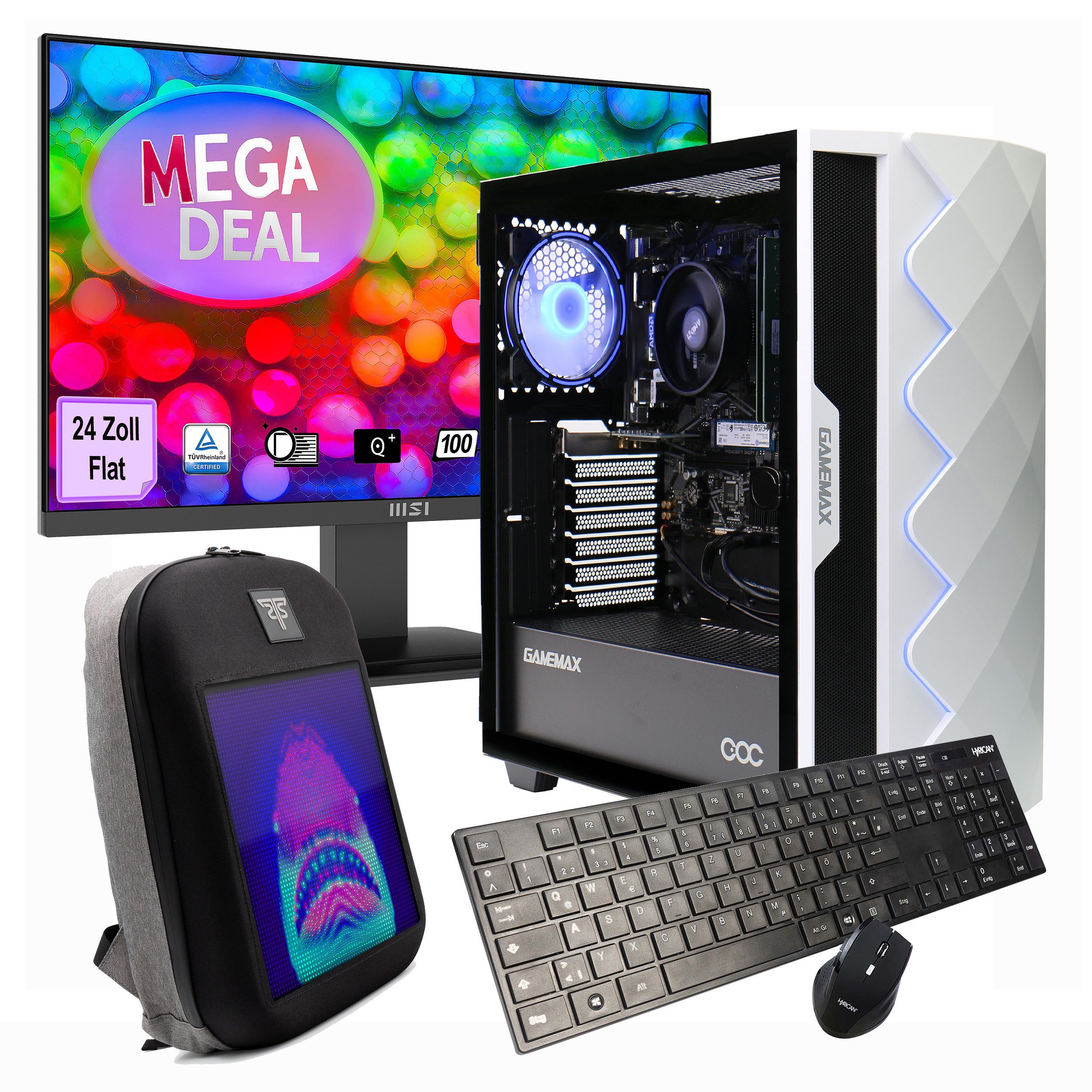 Komplett-Paket mit Zubehör Das Set enthält nicht nur den leistungsstarken PC, sondern auch einen MSI PRO MP2412 Monitor, eine Tastatur, Maus und Rucksack - ideal für den direkten Start nach dem Auspacken.