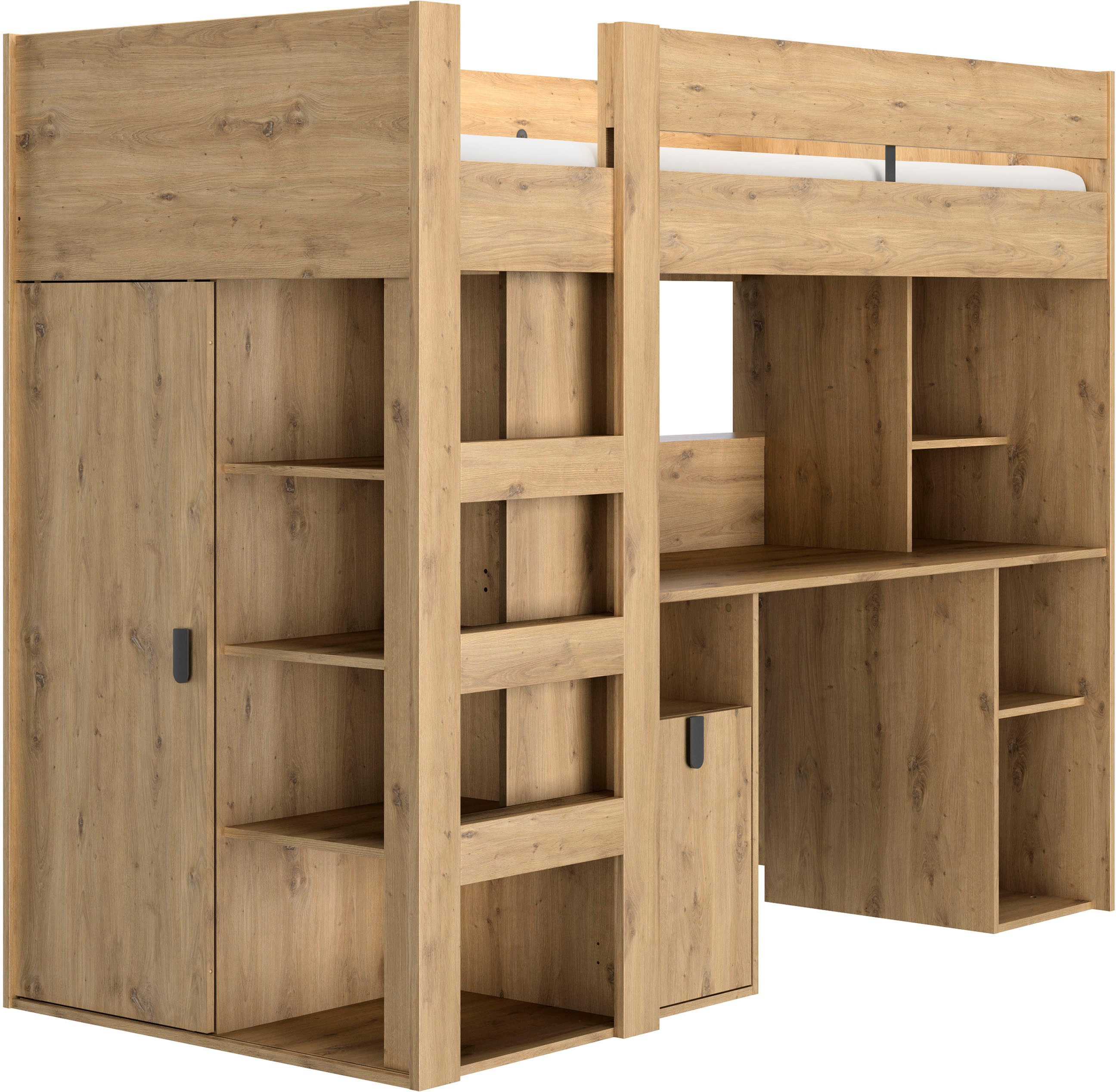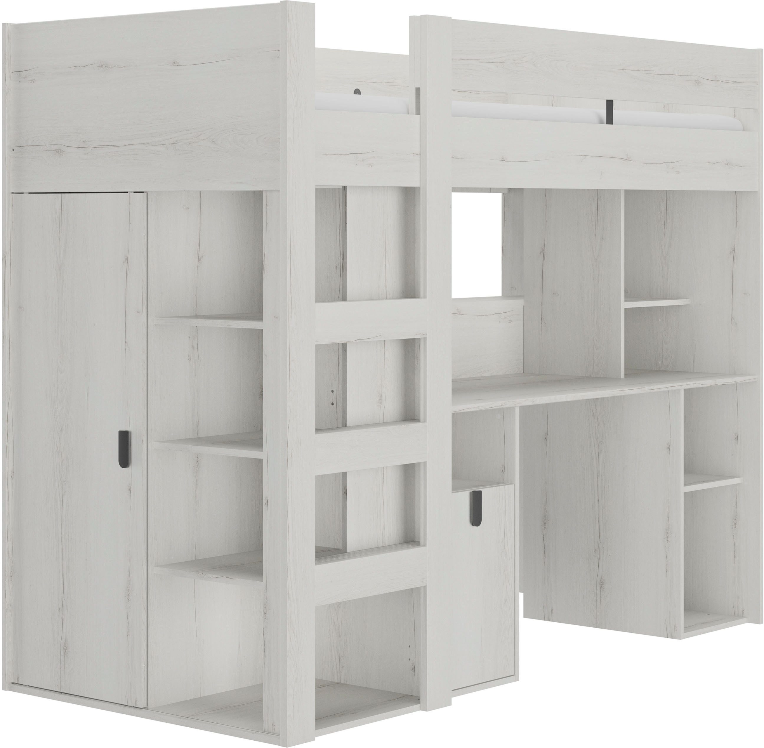 Details Bettgestell | Etagenbett mit integriertem Schreibtisch, Bücherregal und Stauraum |
