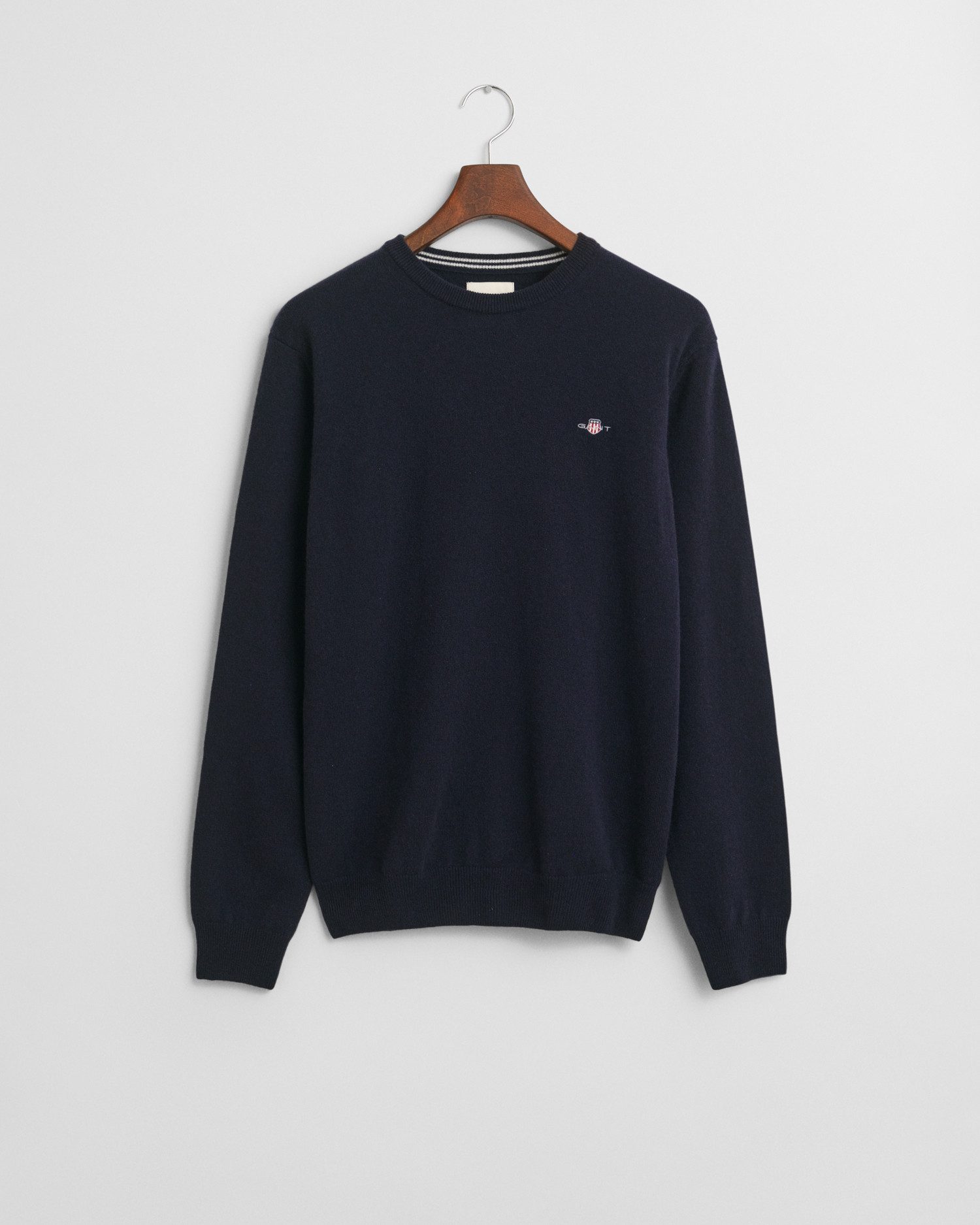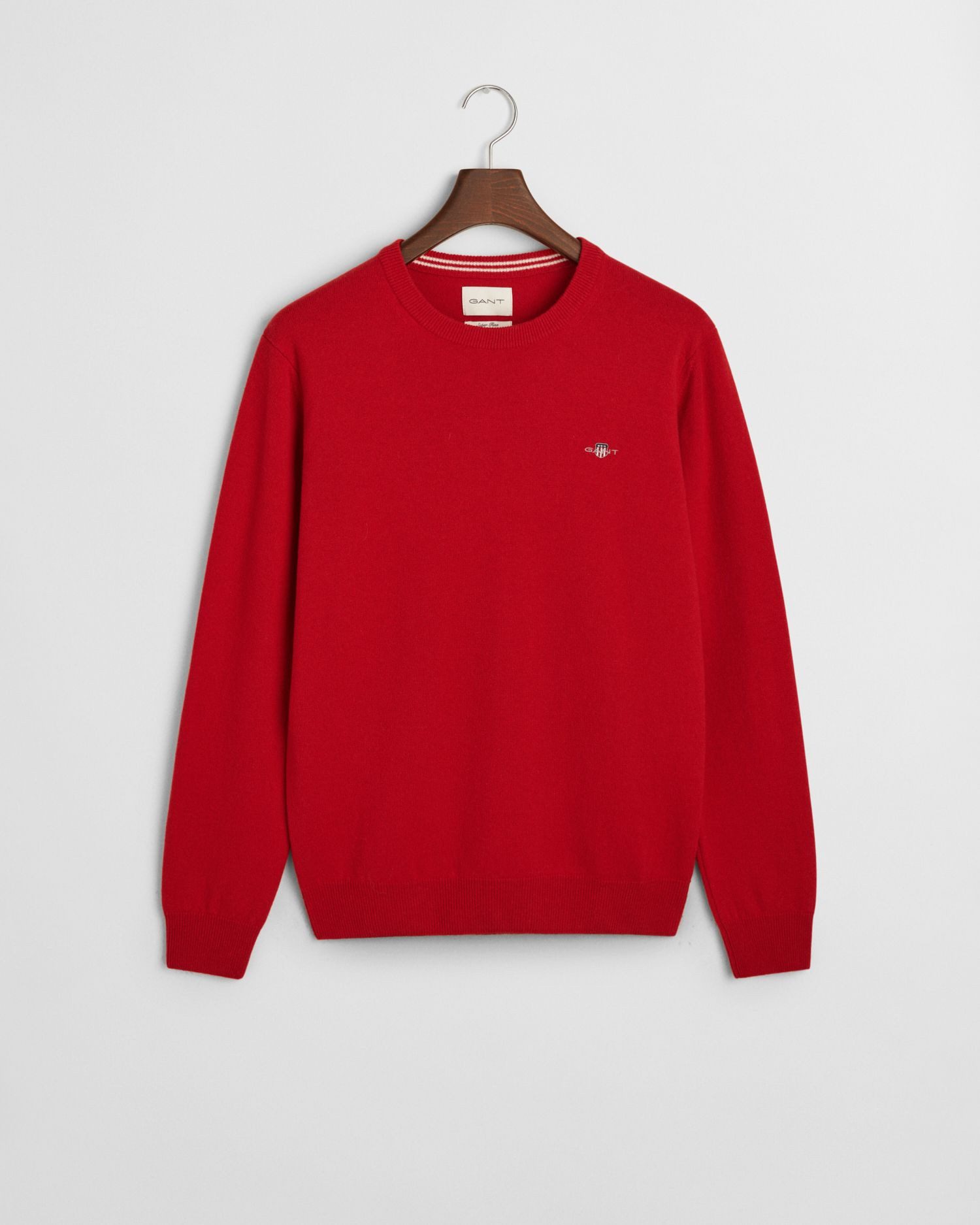 Erlebe den perfekten Mix aus Stil und Komfort mit dem Superfine Rundhalspullover. Der Langarmpullover ist ideal für Deine Basic-Garderobe und überzeugt mit seinem unifarbenen Design. Der Rundhalsausschnitt verleiht dem Pullover eine klassische Note, während die gerippten Abschlüsse an Ärmeln, Saum und Kragen für zusätzliche Eleganz sorgen. Die hochwertige Verarbeitung aus 100% Wolle garantiert nicht nur ein angenehmes Tragegefühl, sondern auch Langlebigkeit. Ob im Büro oder in der Freizeit, dieser Pullover wird schnell zu Deinem neuen Lieblingsstück.Besonders hervorzuheben ist der Regular Fit, der für eine bequeme Passform sorgt, ohne Deine Bewegungsfreiheit einzuschränken. Der Glattstrick verleiht dem Pullover eine edle Optik und einen weichen Griff. Der Kontraststreifen innen im Nacken setzt einen dezenten Akzent und verleiht dem Design eine besondere Note. Die formgestrickte Verarbeitung sorgt für eine perfekte Passform, die sich Deinem Körper anpasst und gleichzeitig genug Spielraum bietet.Die grafische GANT-Stickerei auf der Brust ist ein echter Hingucker und verleiht dem Pullover einen Hauch von Exklusivität. Das unifarbene Design macht ihn vielseitig kombinierbar und passend zu nahezu jedem Outfit. Ob zu Jeans, Chinos oder Stoffhosen – der Superfine Rundhalspullover ist immer die richtige Wahl. Die gerippten Abschlüsse sorgen für einen sicheren Sitz und verhindern, dass der Pullover ausleiert oder verrutscht.Dank des hochwertigen Obermaterials aus 100% Wolle bietet der Pullover nicht nur exzellenten Tragekomfort, sondern auch hervorragende Wärmeisolierung. So bleibst Du auch an kälteren Tagen angenehm warm. Der Pullover ist formgestrickt, was bedeutet, dass er direkt in Form gestrickt wird und dadurch weniger Nähte hat, die reiben oder drücken könnten. Dies erhöht den Tragekomfort zusätzlich und macht den Pullover zu einem idealen Begleiter für jede Gelegenheit. Langarmpullover mit Rundhalsausschnitt Unifarbenes Design mit grafischer GANT-Stickerei Regular Fit und formgestrickt Gerippte Abschlüsse an Ärmeln, Saum und Kragen