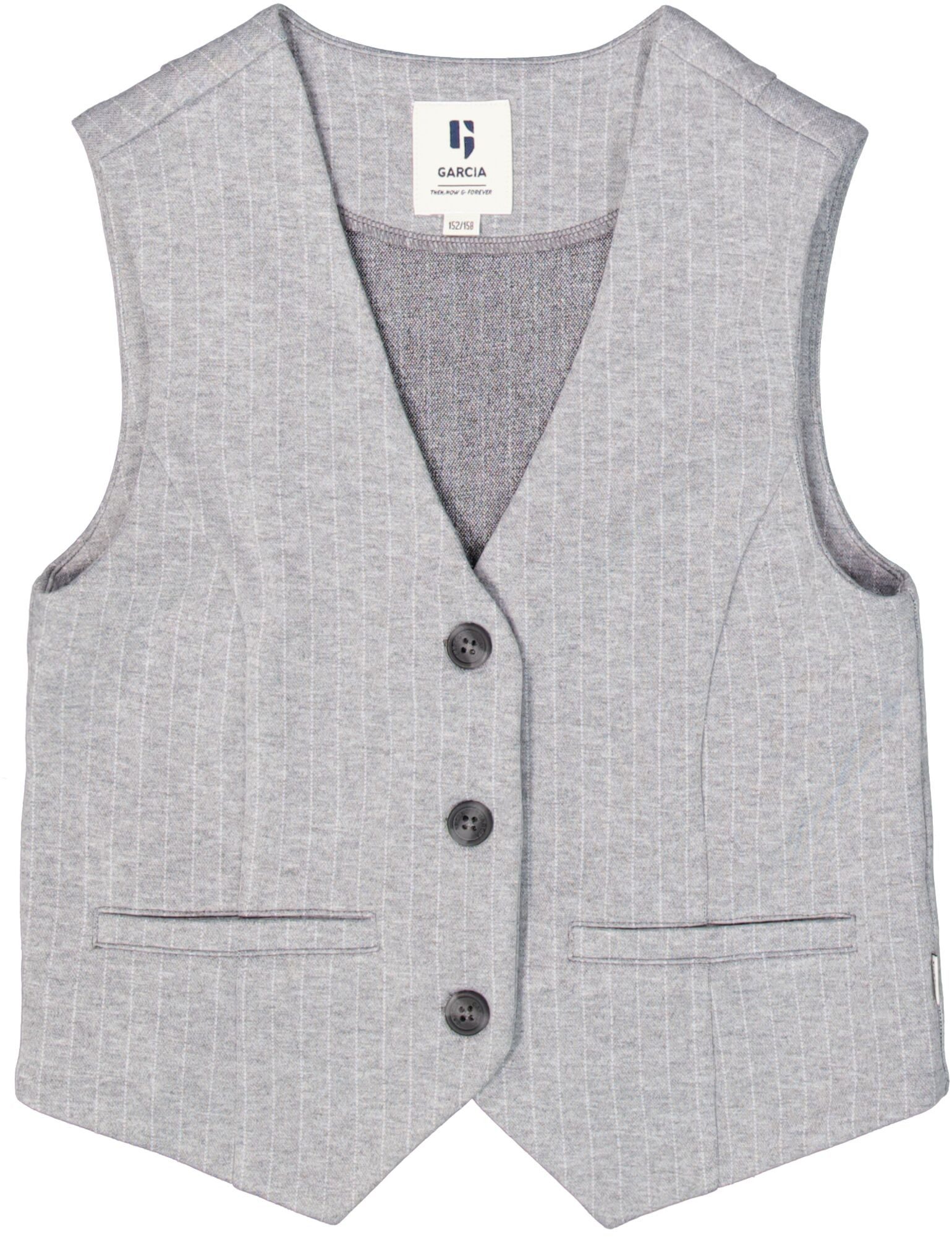 Die Mädchenweste von Garcia kombiniert Eleganz mit Komfort und Vielseitigkeit. Gefertigt aus einer Mischung aus Polyester, Viskose und Elasthan, bietet sie einen angenehmen Tragekomfort und ist sowohl für festliche Anlässe als auch für den Alltag geeignet. Mit klassischem V-Ausschnitt, durchgehender Knopfleiste und zwei praktischen Leistentaschen ausgestattet, stellt sie eine ideale Ergänzung zu diversen Outfits dar. Dies macht sie zu einem unverzichtbaren Kleidungsstück für junge Trendsetterinnen, die sowohl Stil als auch Funktionalität schätzen.