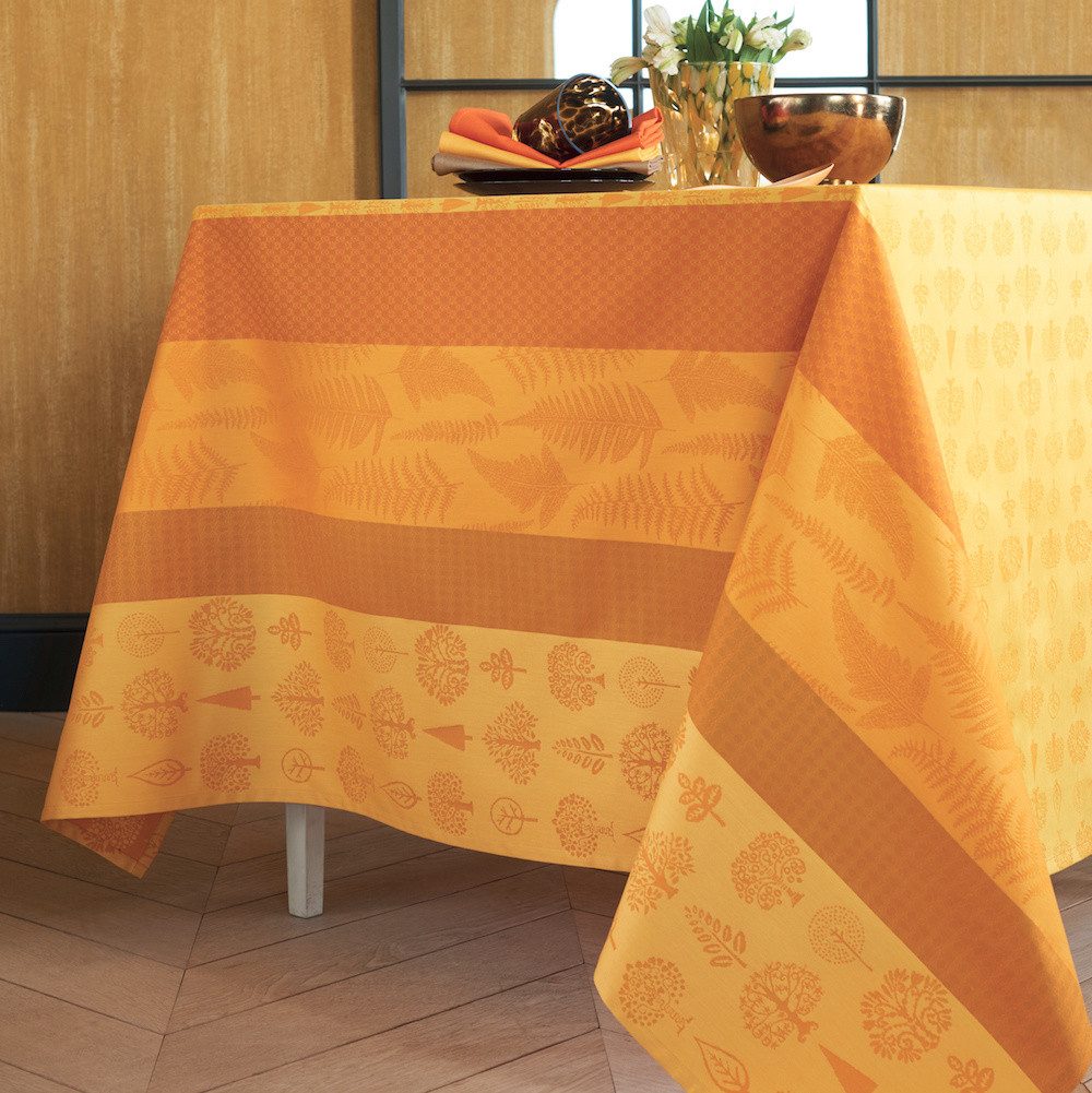 Verleihen Sie Ihrem Essbereich herbstliche Eleganz mit der Tischdecke Mille Forest Automne von Garnier Thiebaut – einem der traditionsreichsten Textilhersteller Frankreichs. Inspiriert von der warmen Farbpalette des Herbstes, verbindet dieses edle Design natürliche Motive mit französischer Tischkultur auf höchstem Niveau. Die Tischdecke besteht aus 100 % hochwertiger Baumwolle, die sich angenehm anfühlt und durch ihre dichte Webart besonders strapazierfähig ist. Das Jacquard-Muster zeigt feine Waldmotive in leuchtenden Rot-, Orange- und Goldtönen – perfekt, um eine gemütliche, stilvolle Atmosphäre zu schaffen. Ob für ein festliches Dinner oder als dekoratives Highlight im Alltag – Mille Forest Automne bringt Farbe und Leben auf Ihren Tisch und bleibt dabei zeitlos schön.