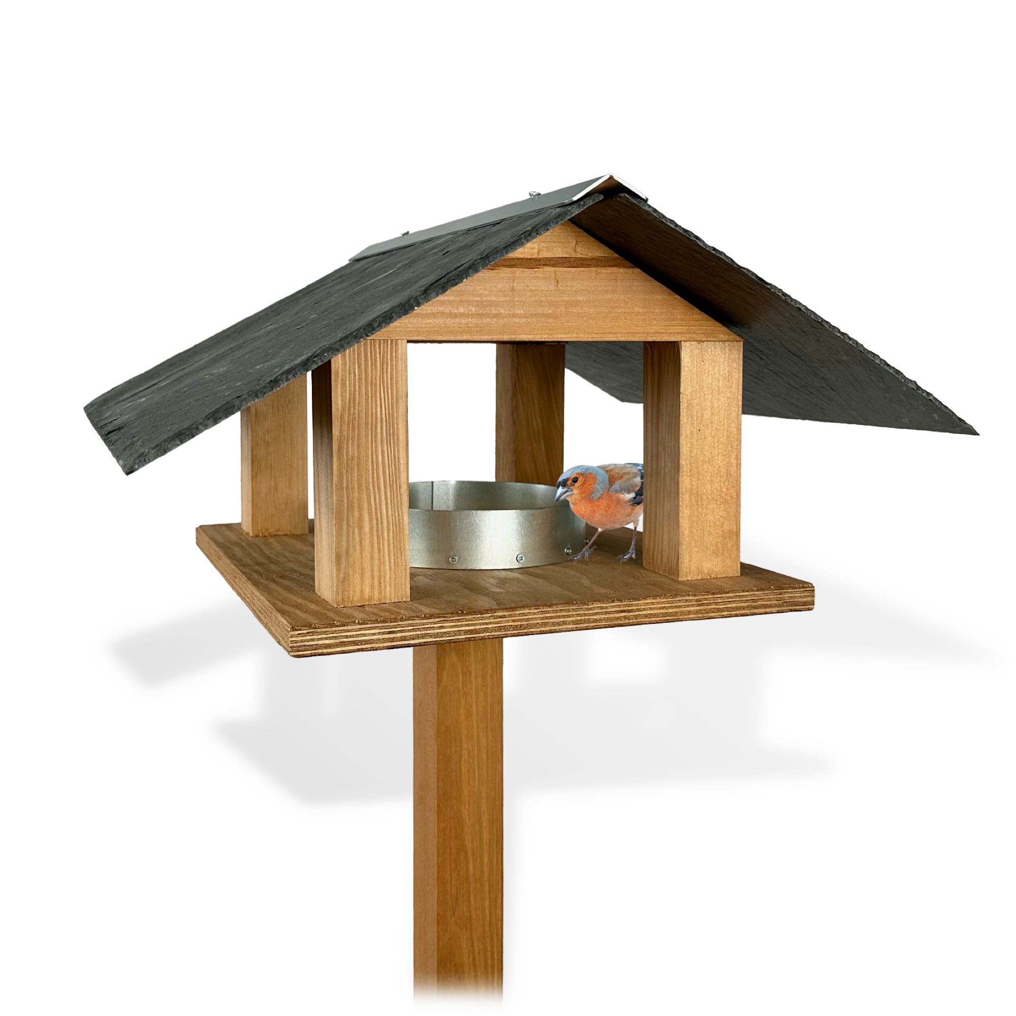Schieferdach mit Metallabschluss, 2in1 Ständer, Futternapf