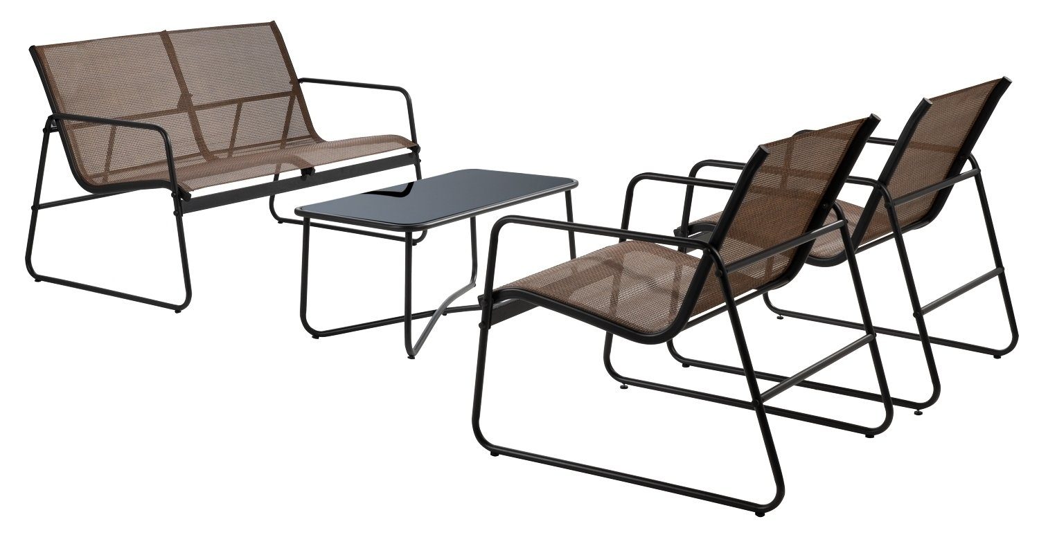Lieferumfang | 4-teilige Gartenlounge bestehend aus 1 Zweiersitzbank, 2 Sesseln und 1 Glastisch |