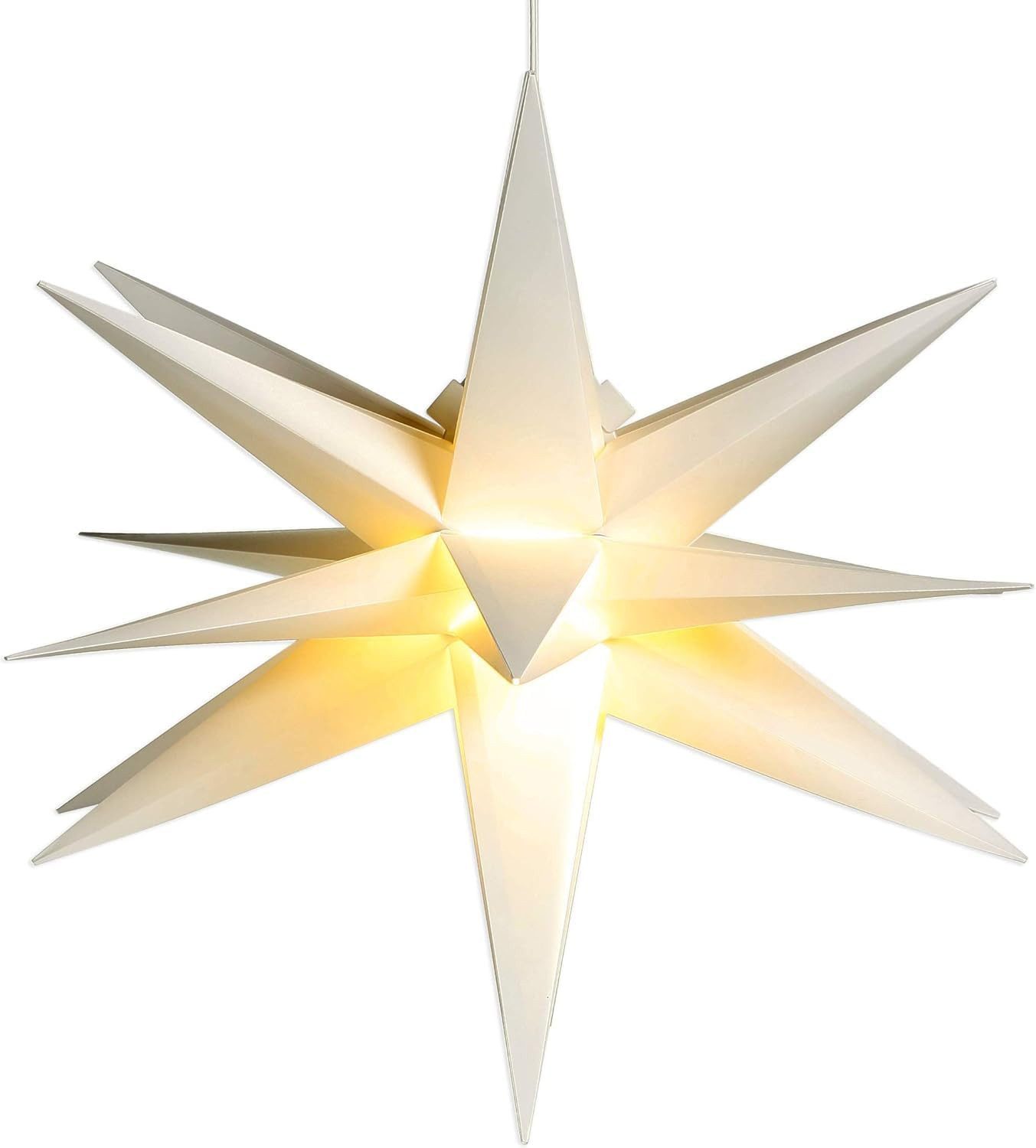 Dieser große beleuchtete Stern ist die perfekte Möglichkeit, Ihr Haus, Ihren Garten oder Ihr Schaufenster mit festlichem Charme zu schmücken. Der Stern hat 18 Zacken und ist aus hochwertiger Kunststofffolie gefertigt.