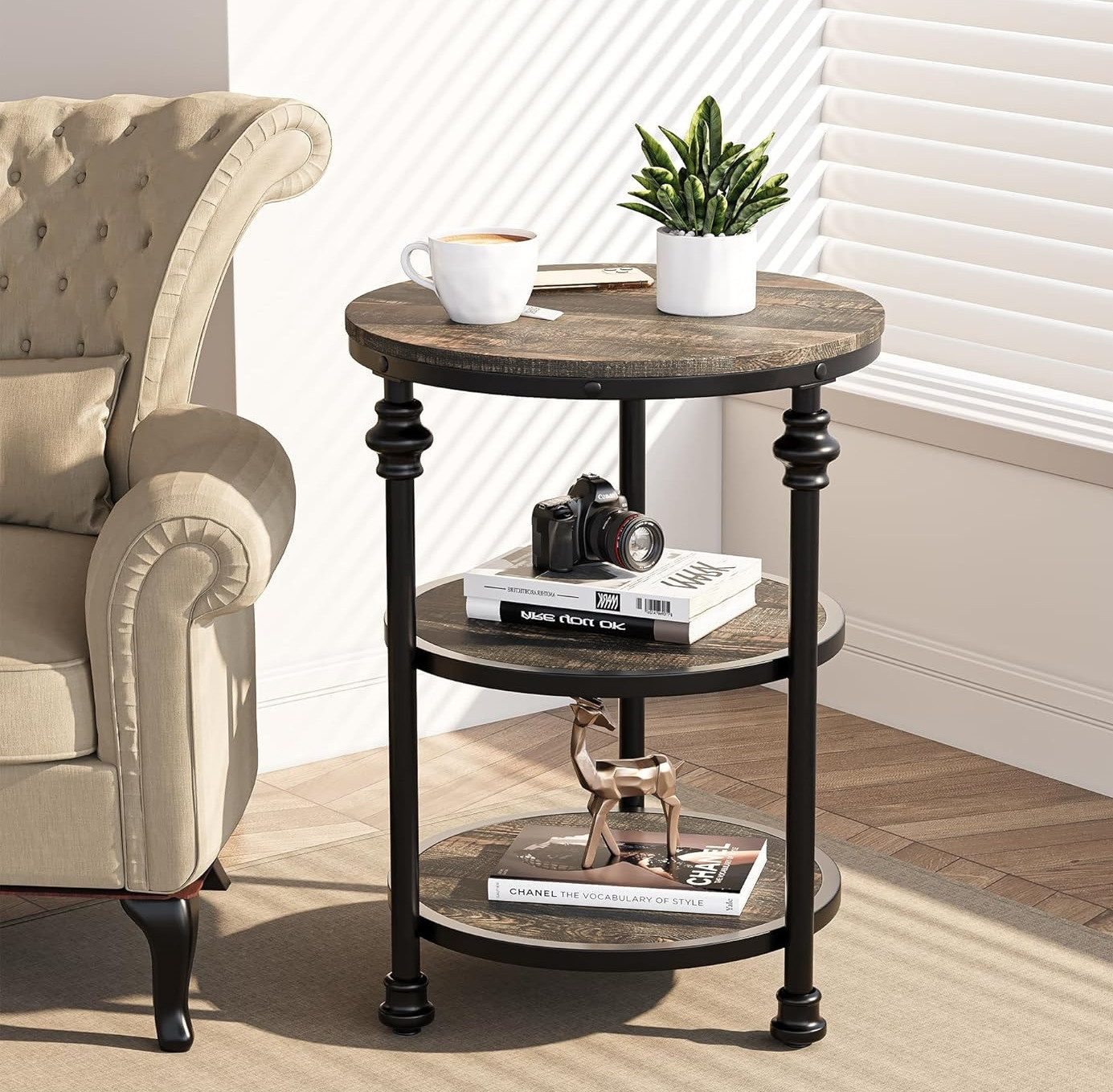Der Beistelltisch rund Holz bietet mit 3 Ebenen großzügigen Stauraum, ideal für Wohnzimmer, Schlafzimmer oder als eleganter Sofatisch.