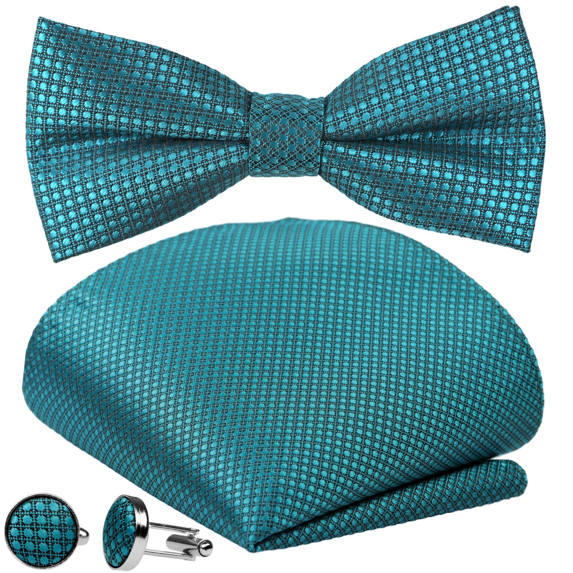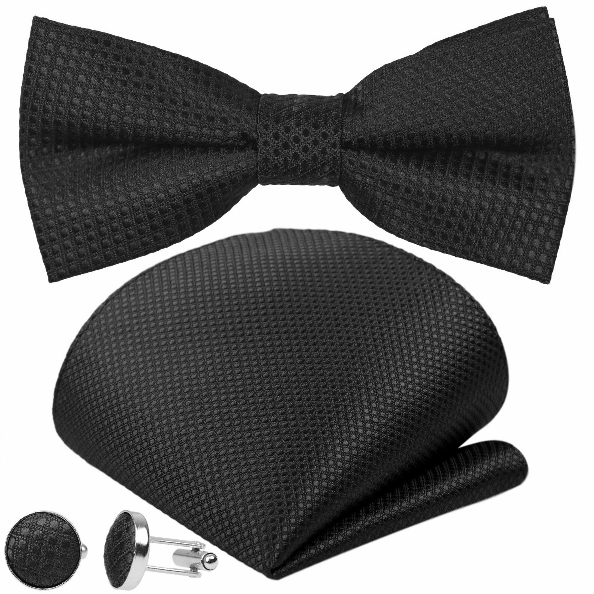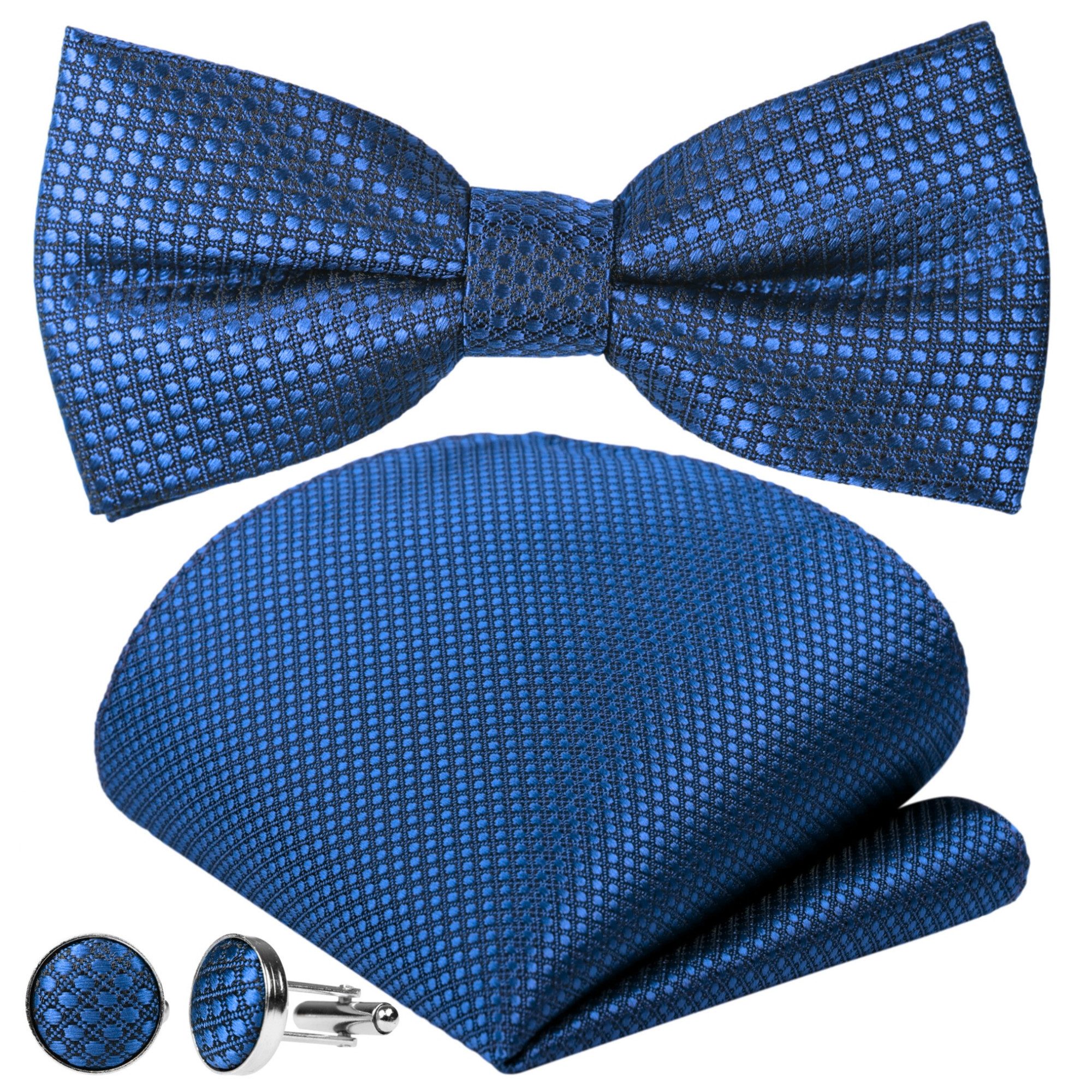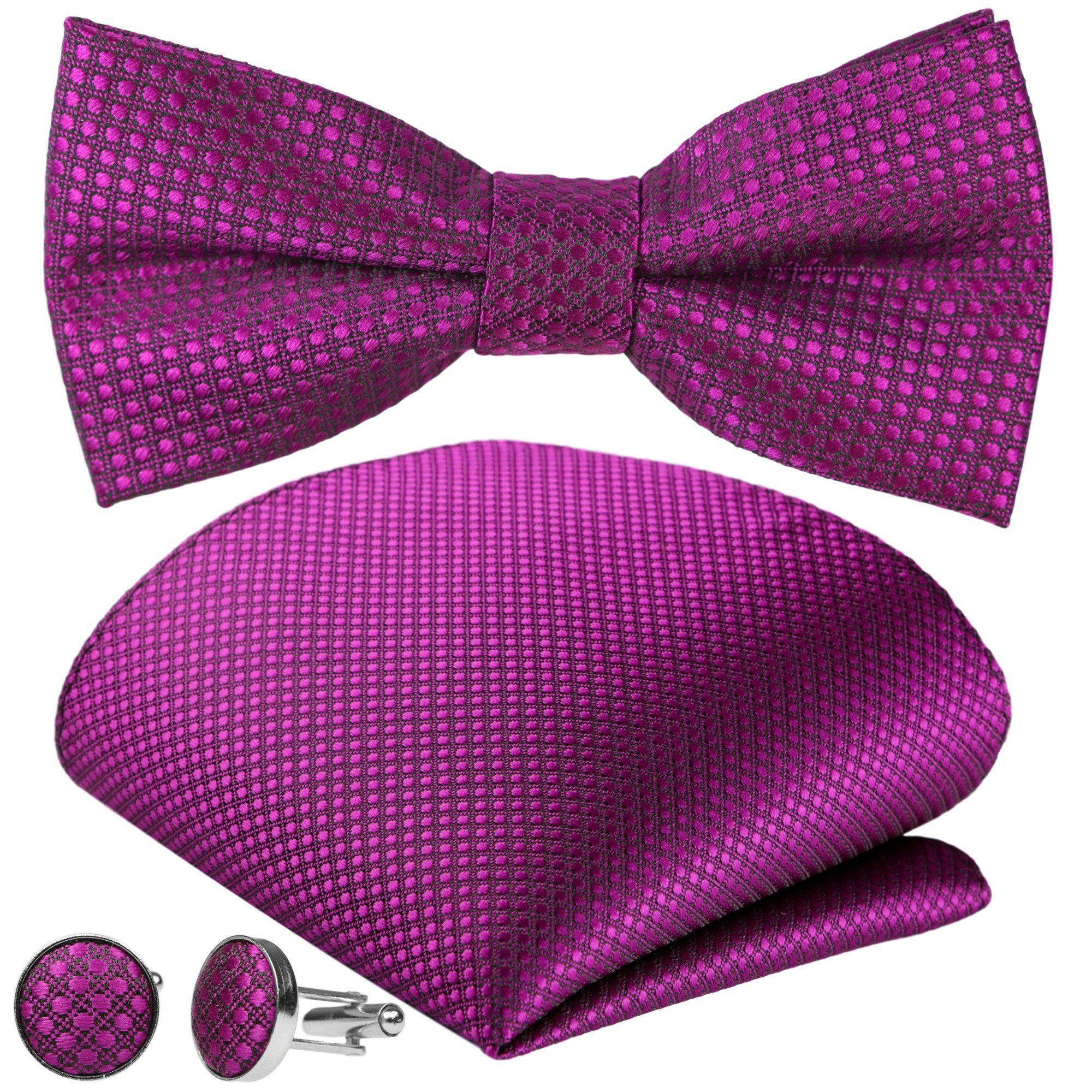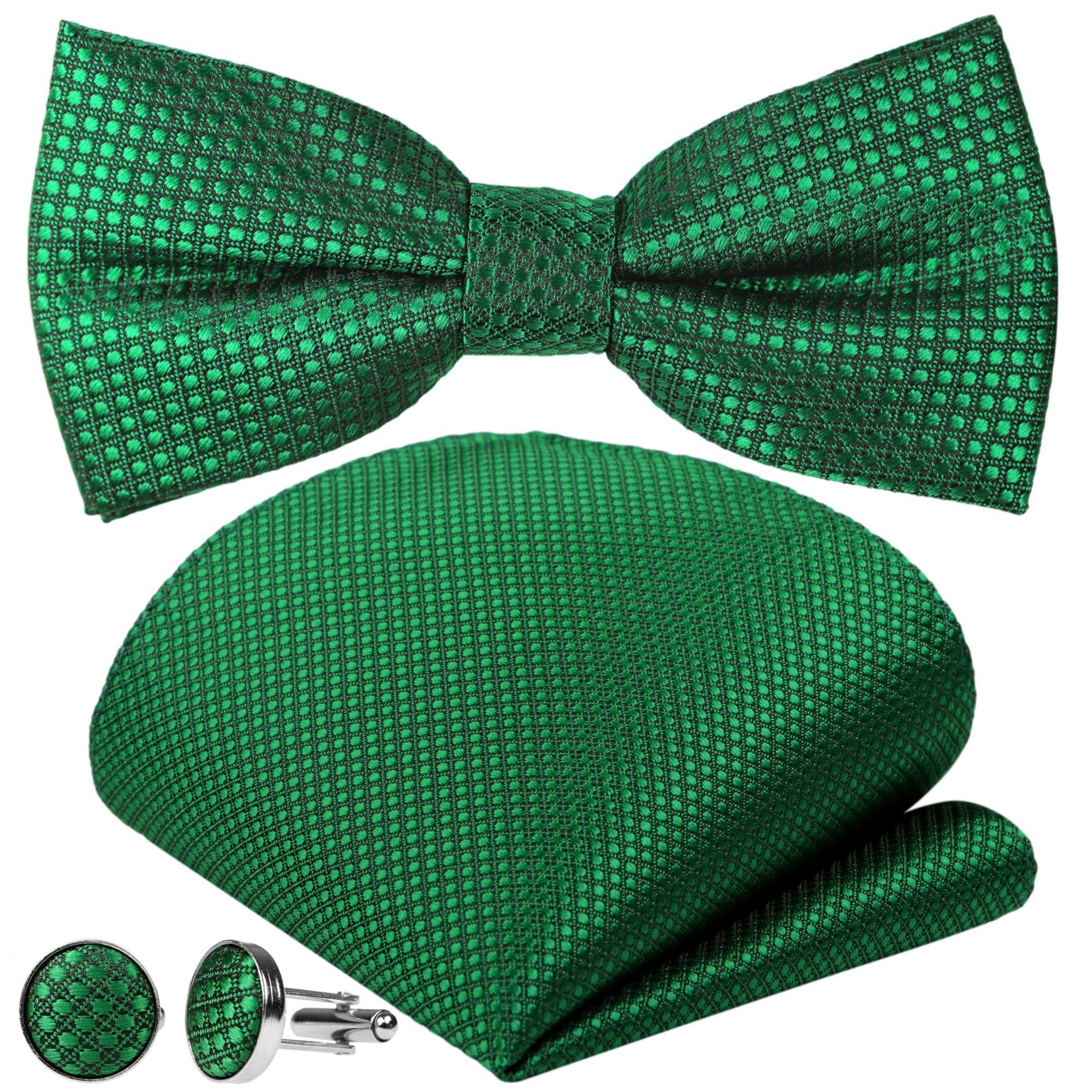 - 3er SET: Karierte-Fliege mit Doppelflügel & Einstecktuch in Premiumqualität