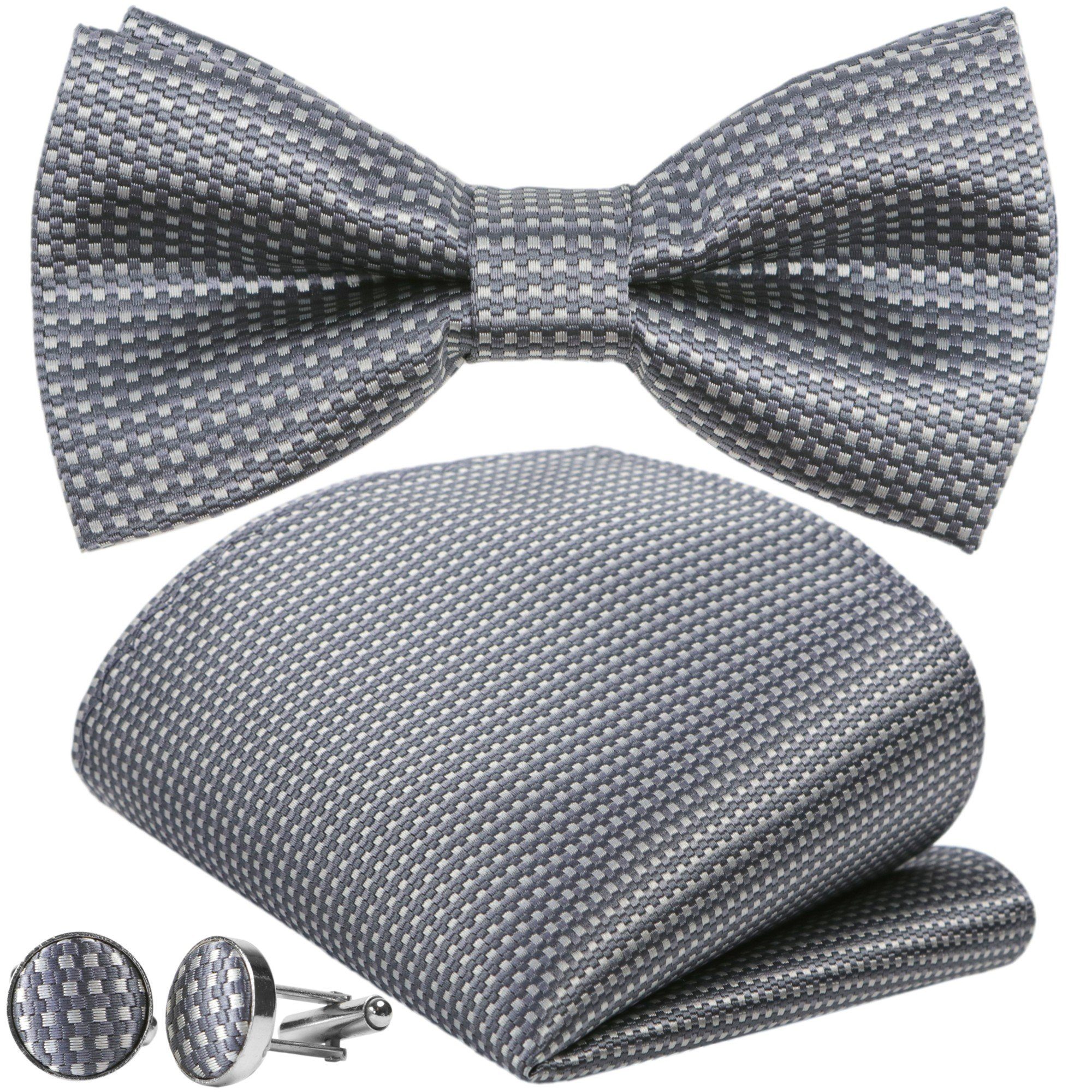 - 3er SET: Karierte-Fliege mit Doppelflügel & Einstecktuch in Premiumqualität