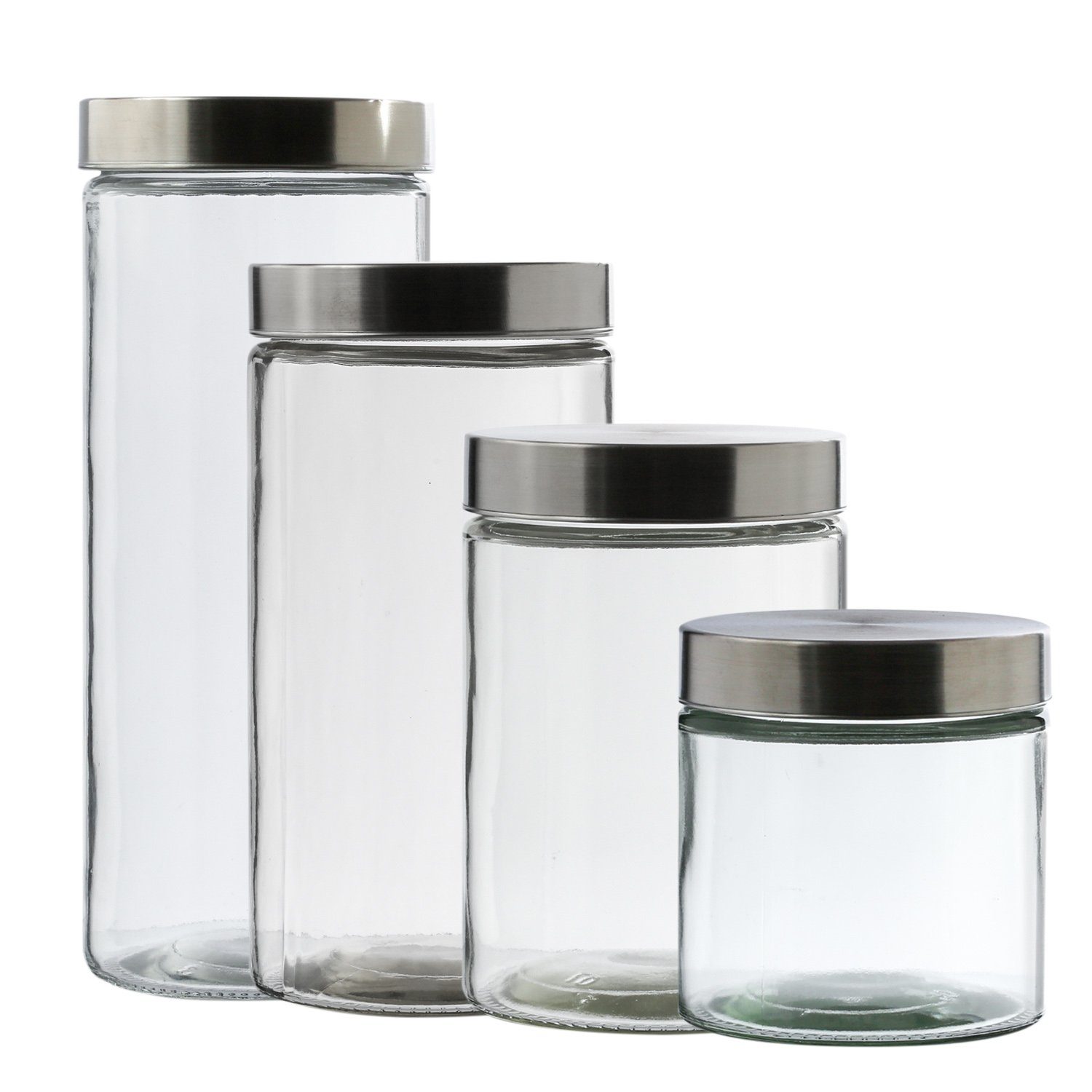 Diese modernen und praktischen Vorratsdosen mit Edelstahldeckel und Silikondichtung sind ideal für alle trockenen Lebensmittel wie Mehl, Nüsse, Nudeln, Gewürze, Tee und vieles mehr. Die transparenten Vorratsgläser haben ein Fassungsvermögen von jeweils 0,85l, 1,25, 1,7l und 2,2l.