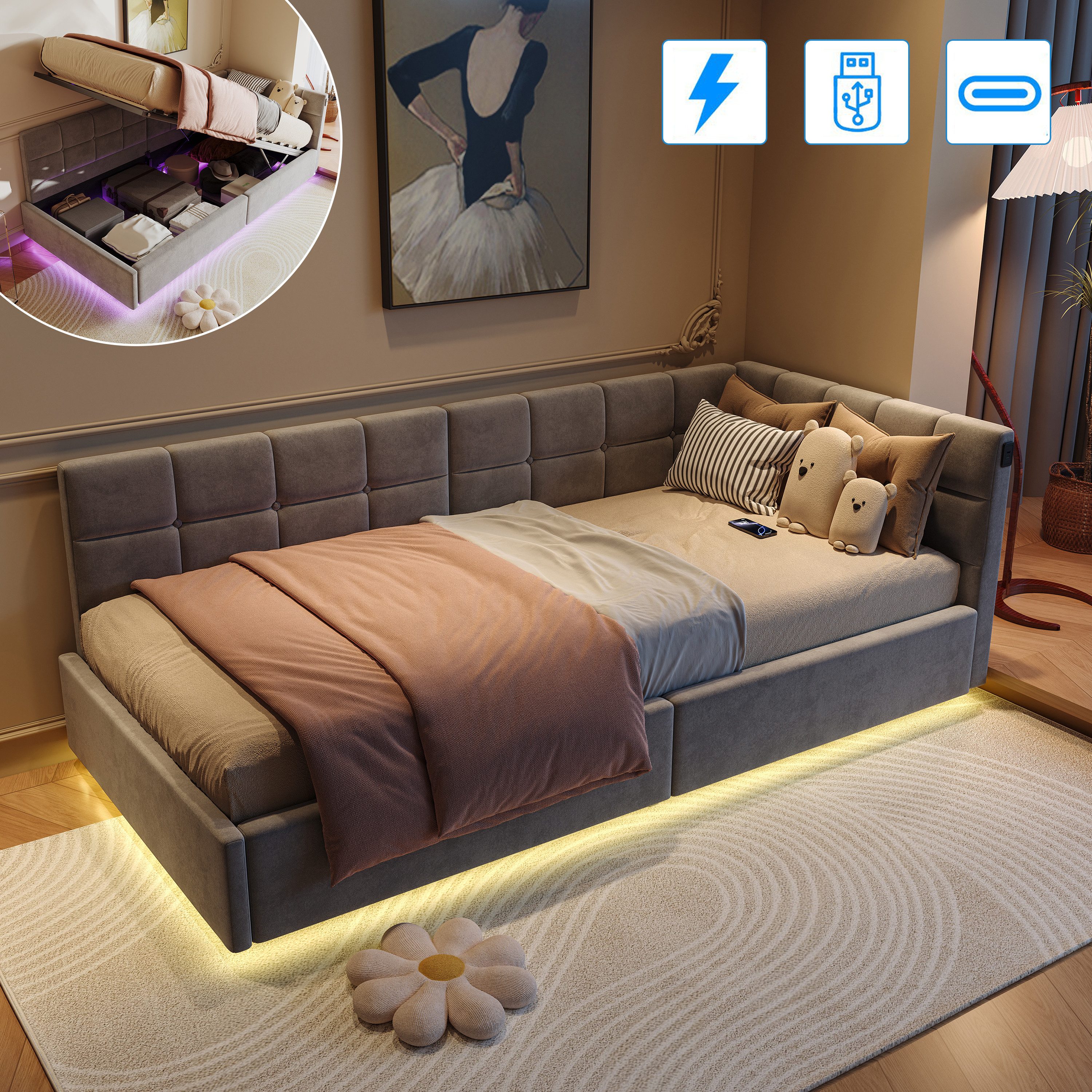 Gönnen Sie sich ein einzigartiges Schlaferlebnis mit unserem stilvollen LED Polsterbett! Dieses Bettgestell kombiniert eine moderne Ästhetik mit Funktionalität, um Ihr Schlafzimmer in eine Wohlfühloase zu verwandeln.