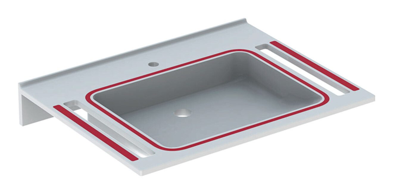 Geberit Publica Waschtisch demenzgerecht eckig mit Ausschnitten mit Hahnloch ohne Überlauf 700 x 550 mm - Weiß Alpin
