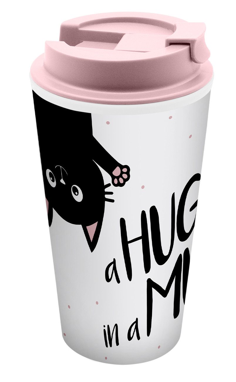 Der Coffee to go Becher Hug in a Mug besteht aus PP und hat ein Fassungsvermögen von 400ml. Das niedliche Design mit der kleinen Katze ist perfekt für Unterwegs, ob ins Büro, die Uni oder die Schule. Nicht nur optisch macht der Becher was her, auch die Eigenschaften des doppelwandigen Isolierbechers sind nicht zu unterschätzen. Der Coffee to go Becher in zartem Rosa hält den Kaffee, Tee oder Kakao durch die doppelwandige Isolierung lange warm. Zusätzlich ist der Inhalt durch die Silikondichtung und die Verschlusskappe geschützt und durch den Deckel können keine Insekten in das Getränk gelangen.