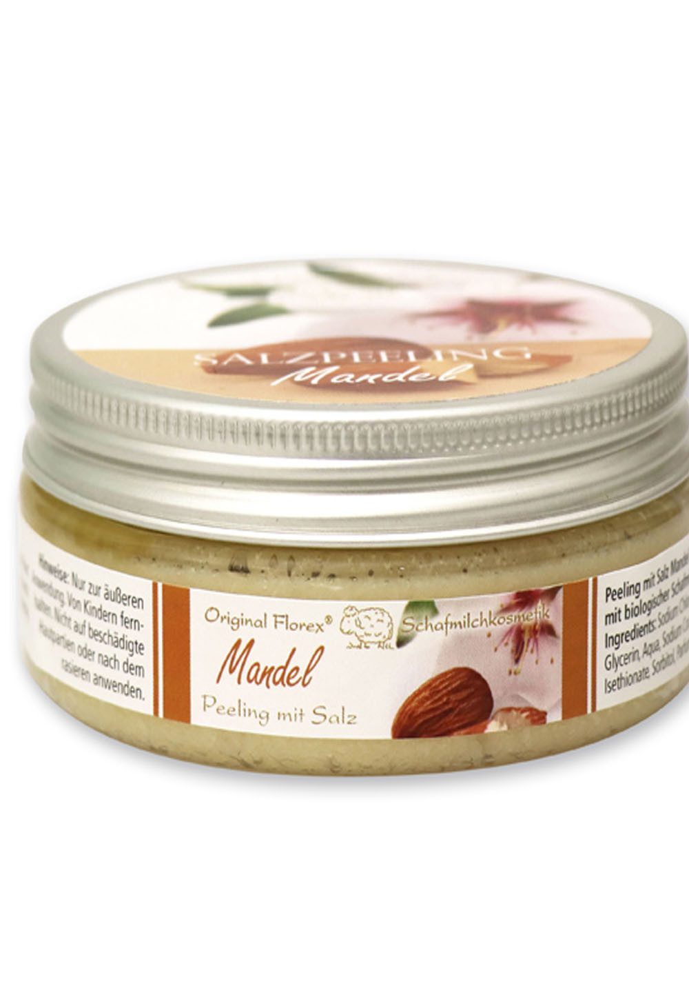 Das Salz Peeling Mandel mit biologischer Schafmilch entfernt lose Hautschüppchen und reinigt mit wertvollen duftenden Ölen. Sie pflegen die Haut und geben neue Geschmeidigkeit zurück. Das Peeling von Florex macht die Haut ganz glatt und seidenweich. Salzpartikel peelen die Haut sanft.