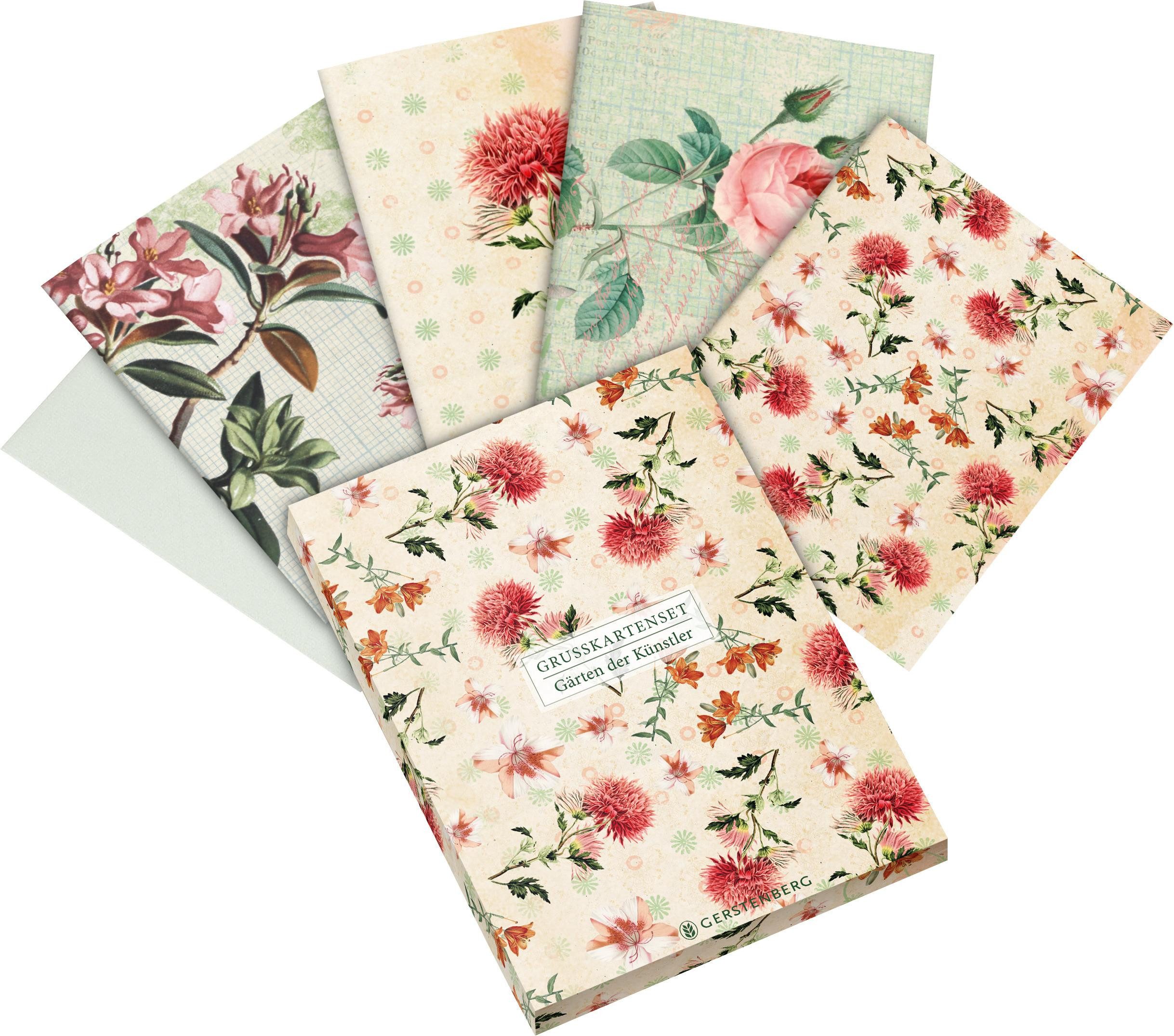 Mit den floral gestalteten Grußkarten aus der Papeterie-Serie "Die Gärten der Künstler" bereiten Sie Ihren Freunden garantiert Vergnügen. Grußkarten-Set mit 8 Doppelkarten plus farbigem Umschlag, 4 Motive, in einer wiederverschließbaren Geschenkschachtel.