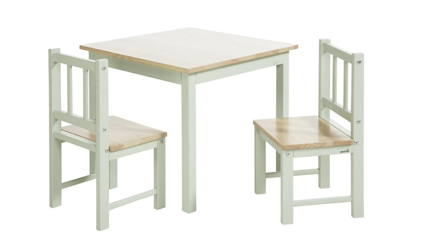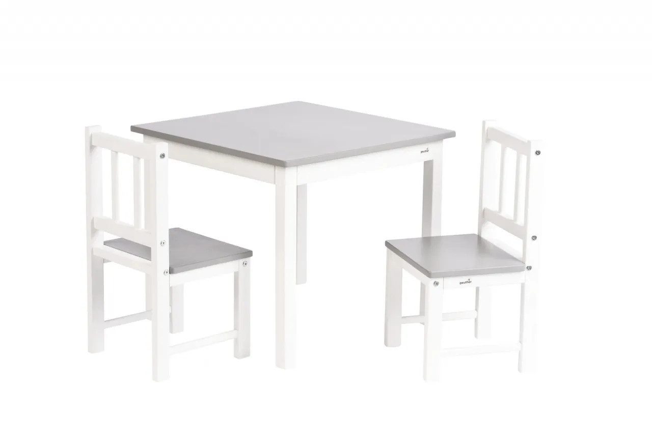 Gefertigt aus hochwertigem Holz und erhältlich in modernen Farbkombinationen wie Grau/Weiß, Grün/Natur, Weiß und Weiß/Natur, fügt sich die Sitzgruppe harmonisch in jedes Kinderzimmer oder den Wohnbereich ein. Mit einer Tischhöhe von 49 cm und einer Stuhlhöhe von 53 cm (Sitzhöhe 25,6 cm) bietet sie den Kleinen einen bequemen und sicheren Platz.