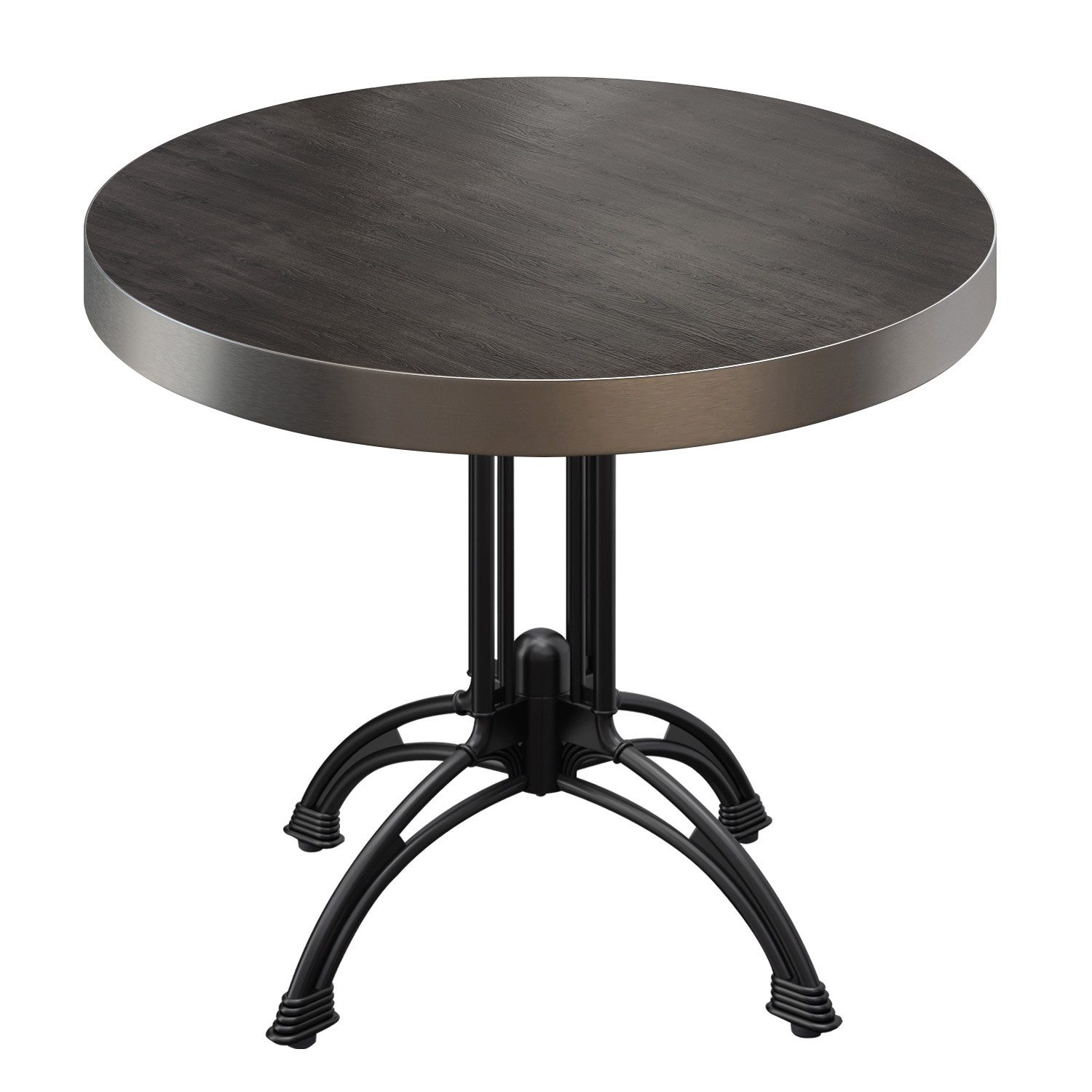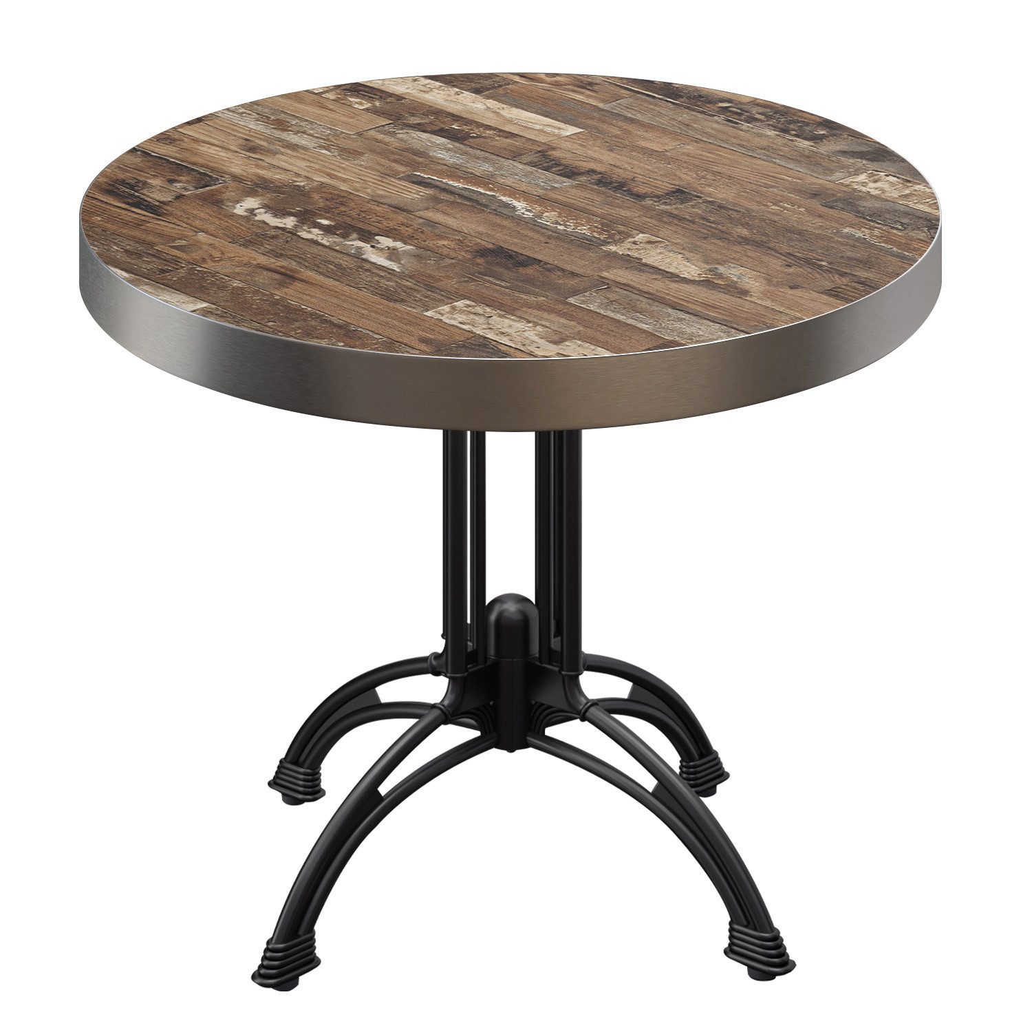 BMLG | Bistro Tisch | Ø 60 x 77 cm | Rund | Edelstahl Rand | Eiche / Schwarz | Tischplatte: Ø 58 x 5 cm | Tischgestell: 72 cm | Gesamthöhe: 77 cm |