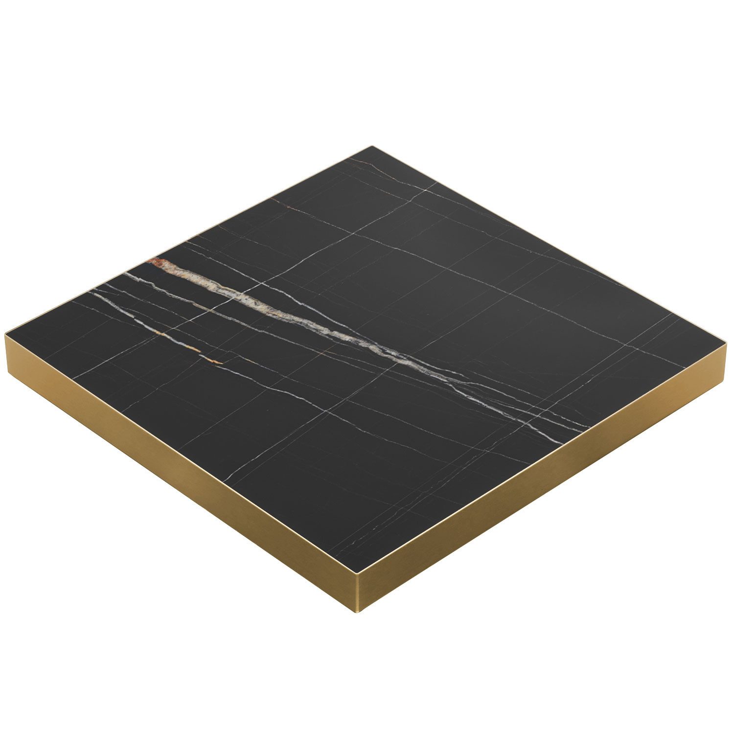 Design für jedes Ambiente Die **Brasil**-Tischplatte mit goldenem Rand kombiniert Funktionalität mit einem luxuriösen Design. Sie passt perfekt in edle Innenräume und sorgt für ein stilvolles Ambiente in gastronomischen Einrichtungen oder i