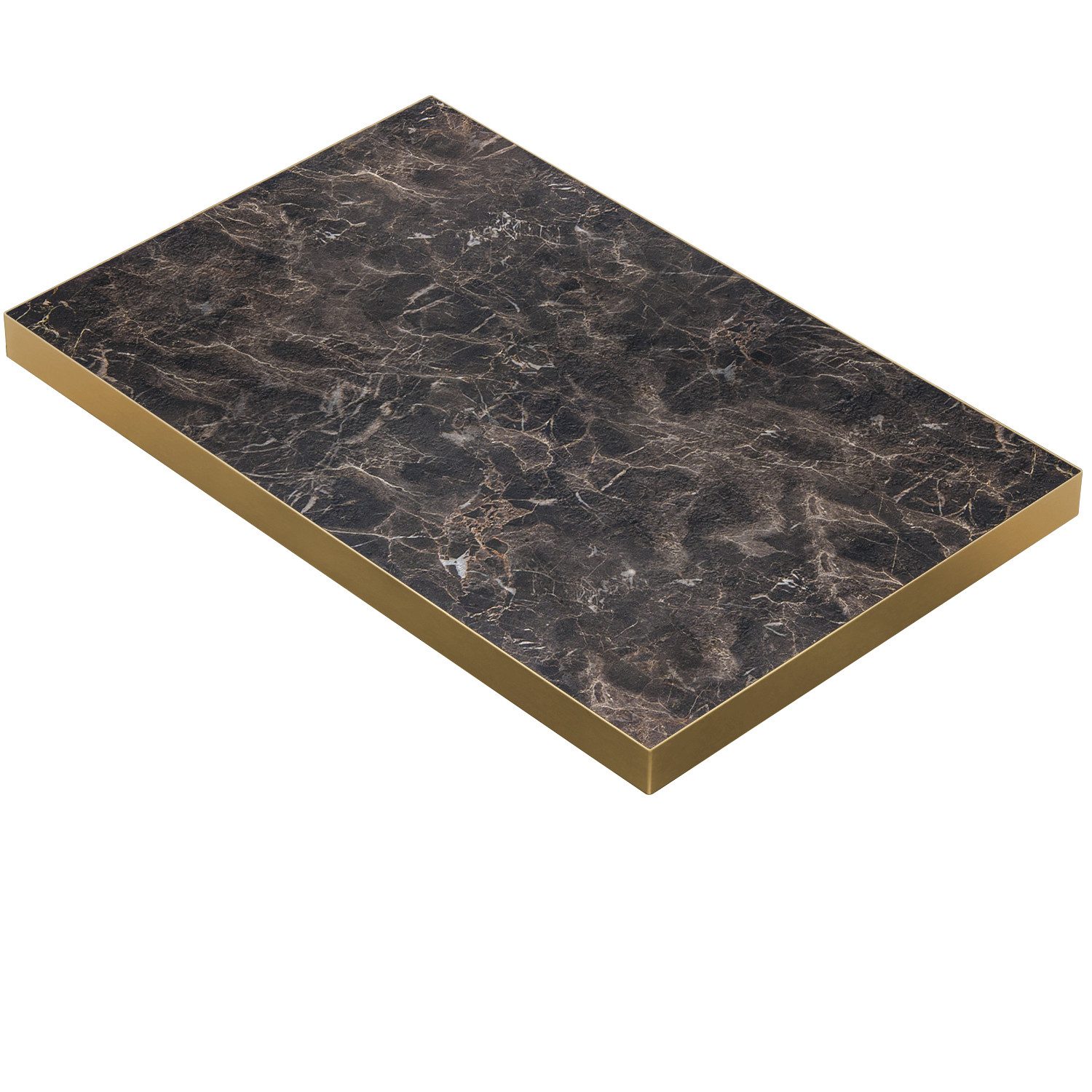 Design für jedes Ambiente Die **Brasil**-Tischplatte mit goldenem Rand kombiniert Funktionalität mit einem luxuriösen Design. Sie passt perfekt in edle Innenräume und sorgt für ein stilvolles Ambiente in gastronomischen Einrichtungen oder