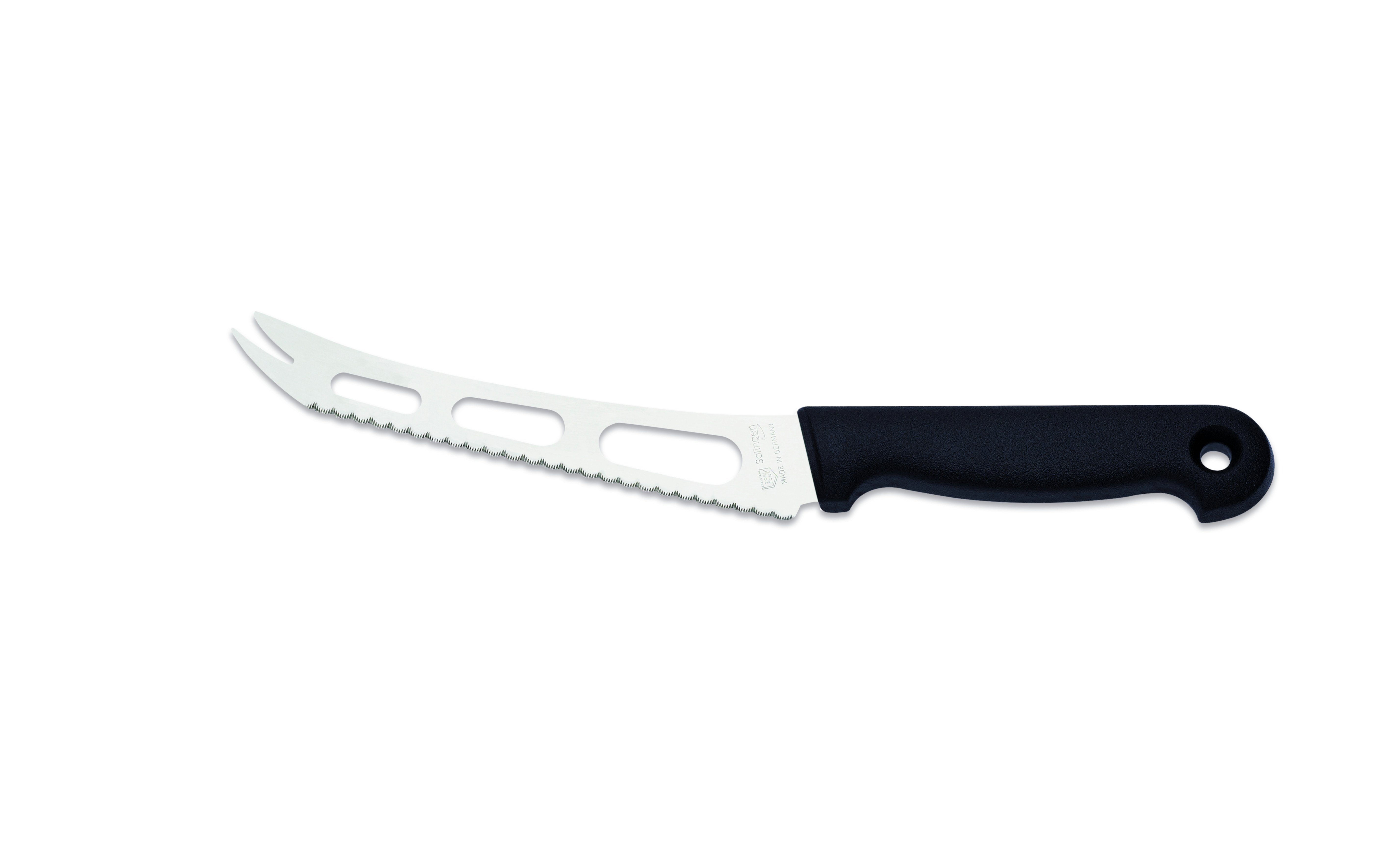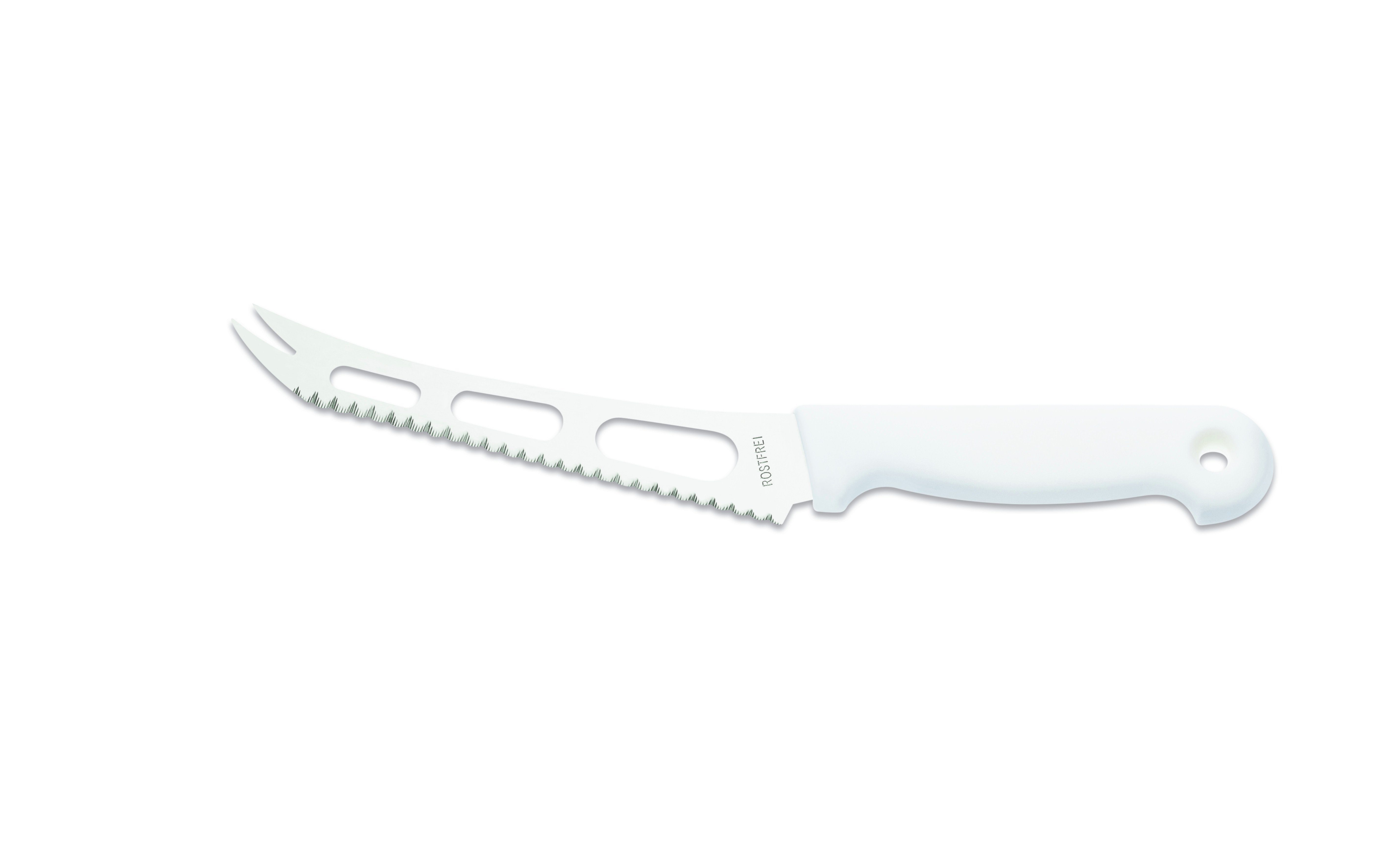 Materialeigenschaften | Kunststoff gespritzt rostfrei lebensmittelecht 56 HRC bruchfest Chrom Molybdän hochglanzpoliert Ergonomischer und rutschsicherer Kunststoffgriff gebogene Form |