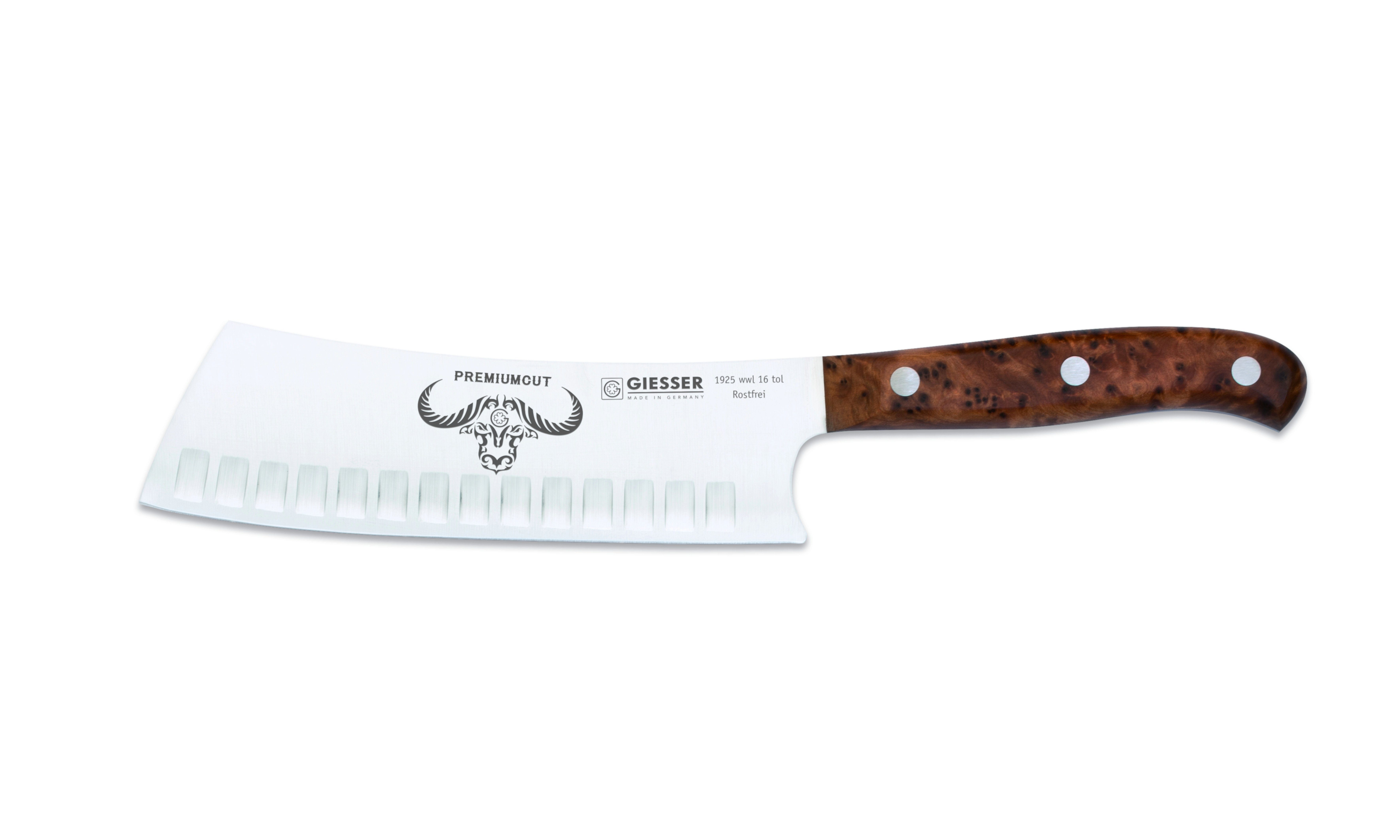 Entdecken Sie die unglaublich scharfen und hochwertigen PremiumCut Messer des Modells Yobocho No 1. Unser Online-Marktplatz bietet Ihnen diese erstklassigen Messer in vier Griffvarianten an. Die Artikelnummer 1925 wwr 16 tol steht für ein Messer mit einer Klingenlänge von 16 cm. Der Griff besteht aus edlem, mittelbraunem Thujaholz, das für seine außergewöhnliche Widerstandsfähigkeit bekannt ist. Jedes Messer wird von erfahrenen Messerschmieden in aufwendiger Handarbeit hergestellt. Der Kullenschliff ermöglicht eine verbesserte Schnittführung, wodurch die Klinge mit weniger Reibung durch jedes Schnittgut gleitet. Dies gewährleistet ein ermüdungsfreieres Arbeiten und schont die Schneide. Besonders hervorzuheben ist der einzigartige Thujagriff. Aus einem der edelsten Wurzelhölzer gefertigt, ist jeder Griff ein absolutes Unikat. Durch feinstes Polieren fühlt sich das Holz sehr samtig an, wodurch der Griff äußerst angenehm und sicher in der Hand liegt. Die perfekte Balance des Messers ermöglicht präzises Schneiden. Unsere PremiumCut Messer sind ideal für weiche Lebensmittel wie Gemüse, Fisch und knochenloses Fleisch. Jedes Messer wird in einer exklusiven Holzschatulle geliefert und ist mit einem Protector Klingenschutz ausgestattet. Dieses Set ist die perfekte Geschenkidee für alle leidenschaftlichen Köchinnen und Köche. Bitte beachten Sie, dass unsere Kochmesser von Hand gewaschen werden sollten, da Spülmaschinen den Messern schaden können. Aufgrund seiner außergewöhnlichen Schärfe sollte das Messer stets mit Respekt behandelt werden. Wir empfehlen, das Messer gründlich von Hand abzuspülen und außerhalb der Reichweite von Kindern aufzubewahren.Entdecken Sie die unglaublich scharfen und hochwertigen PremiumCut Messer des Modells Yobocho No 1. Unser Online-Marktplatz bietet Ihnen diese erstklassigen Messer in vier Griffvarianten an. Die Artikelnummer 1925 wwr 16 tol steht für ein Messer mit einer Klingenlänge von 16 cm. Der Griff besteht aus edlem, mittelbraunem Thujaholz, das für seine außergewöhnliche Widerstandsfähigkeit bekannt ist. Jedes Messer wird von erfahrenen Messerschmieden in aufwendiger Handarbeit hergestellt. Der Kullenschliff ermöglicht eine verbesserte Schnittführung, wodurch die Klinge mit weniger Reibung durch jedes Schnittgut gleitet. Dies gewährleistet ein ermüdungsfreieres Arbeiten und schont die Schneide. Besonders hervorzuheben ist der einzigartige Thujagriff. Aus einem der edelsten Wurzelhölzer gefertigt, ist jeder Griff ein absolutes Unikat. Durch feinstes Polieren fühlt sich das Holz sehr samtig an, wodurch der Griff äußerst angenehm und sicher in der Hand liegt. Die perfekte Balance des Messers ermöglicht präzises Schneiden. Unsere PremiumCut Messer sind ideal für weiche Lebensmittel wie Gemüse, Fisch und knochenloses Fleisch. Jedes Messer wird in einer exklusiven Holzschatulle geliefert und ist mit einem Protector Klingenschutz ausgestattet. Dieses Set ist die perfekte Geschenkidee für alle leidenschaftlichen Köchinnen und Köche. Bitte beachten Sie, dass unsere Kochmesser von Hand gewaschen werden sollten, da Spülmaschinen den Messern schaden können. Aufgrund seiner außergewöhnlichen Schärfe sollte das Messer stets mit Respekt behandelt werden. Wir empfehlen, das Messer gründlich von Hand abzuspülen und außerhalb der Reichweite von Kindern aufzubewahren.
