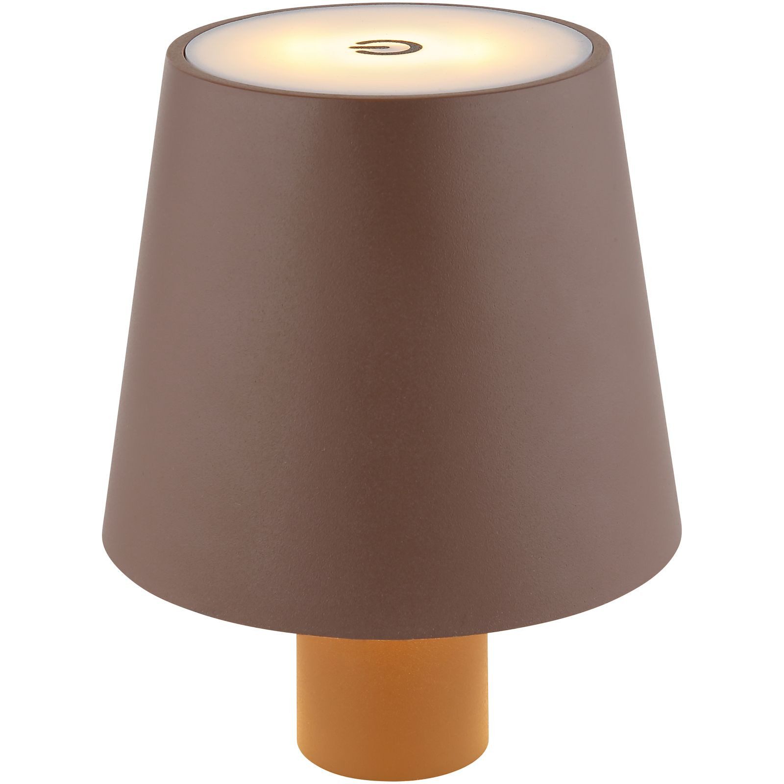 Mit ihrem runden Schirm aus opalem Kunststoff erzeugt sie ein angenehmes Licht und schafft eine gemütliche Atmosphäre. Der Korpus aus braun mattem Kunststoff und Metall verleiht der Leuchte ein modernes und ansprechendes Erscheinungsbild. Ausgestattet mit einem stufenlosen Touchdimmer und einer Memoryfunktion ermöglicht die Tischleuchte eine individuelle Anpassung der Helligkeit und speichert bevorzugte Einstellungen. Sie wird mit einem USB-Ladekabel geliefert und kann einfach per Touch On/Off bedient werden. Mit einem Durchmesser von 106 mm und einem Output von 130 Lumen bietet sie ausreichend Licht für verschiedene Anwendungen.