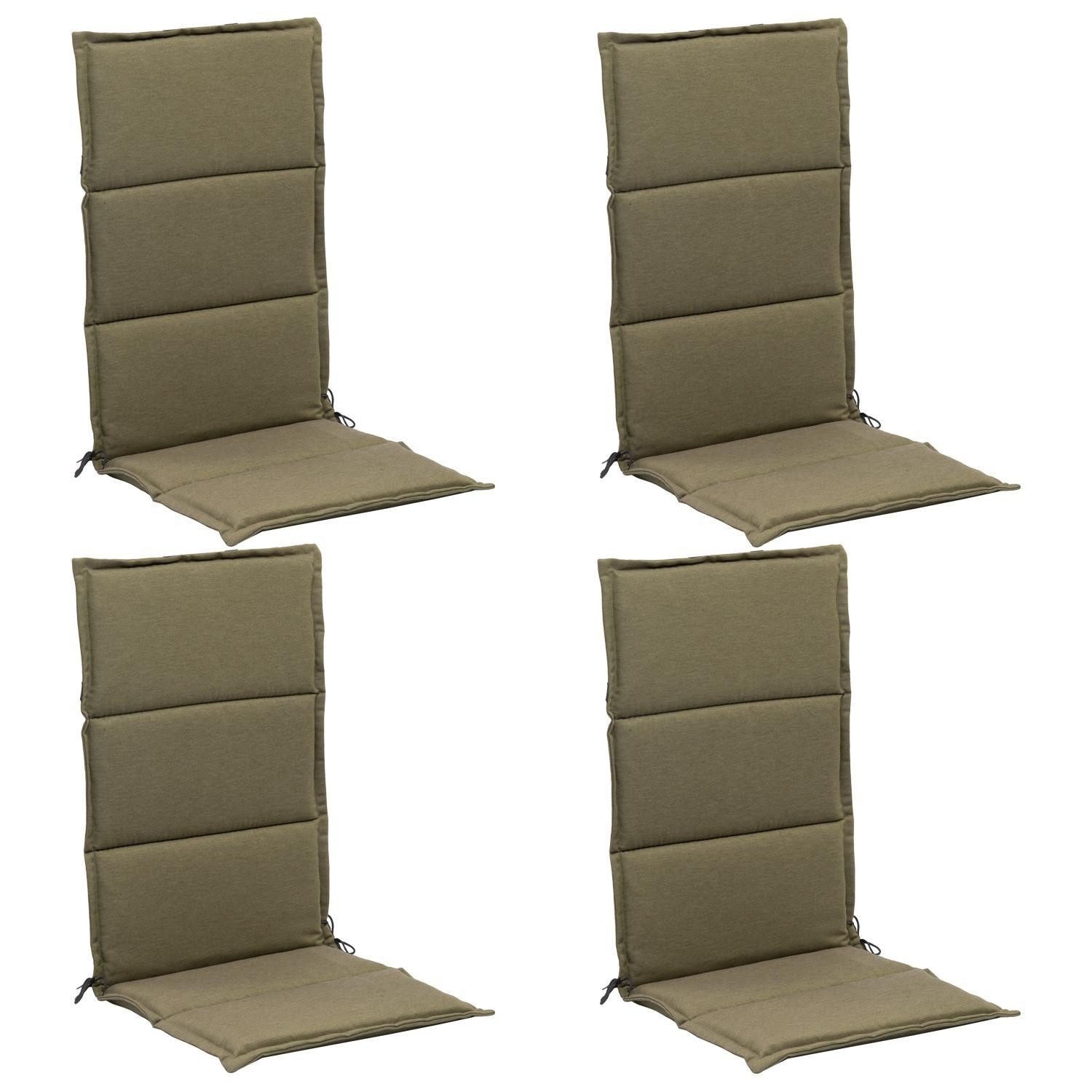 Lieferumfang | 4 Gartenstuhlauflagen für Hochlehnstühle mit verstellbarem Gurtband und seitlichen Bindekordeln |