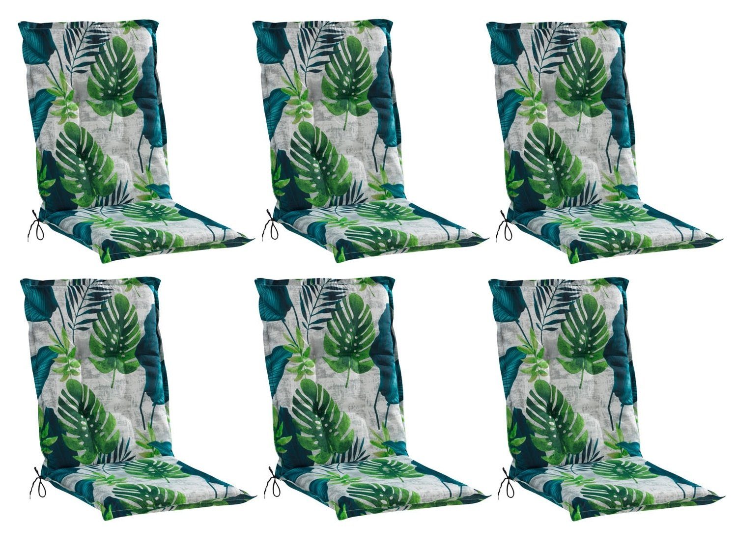 Lieferumfang | 6 Gartenstuhlauflagen für Mittellehnstühle mit verstellbarem Gurtband und seitlichen Bindekordeln |