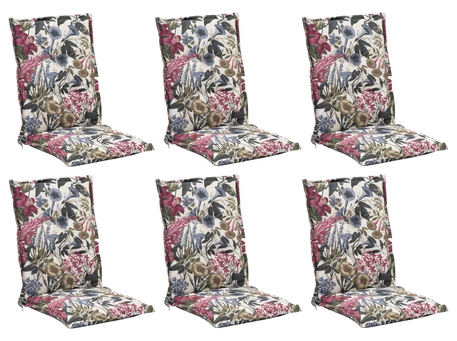 Lieferumfang | 6 Gartenstuhlauflagen für Mittellehnstühle mit verstellbarem Gurtband und seitlichen Bindekordeln |