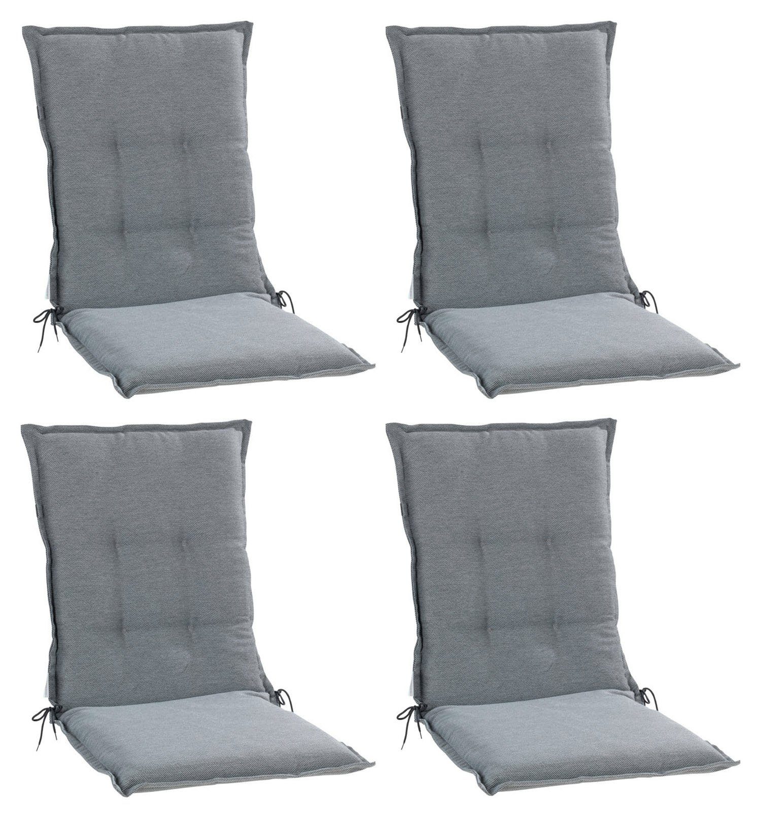 | Lieferumfang | 4 Gartenstuhlauflagen für Mittellehnstühle mit verstellbarem Gurtband und seitlichen Bindekordeln |