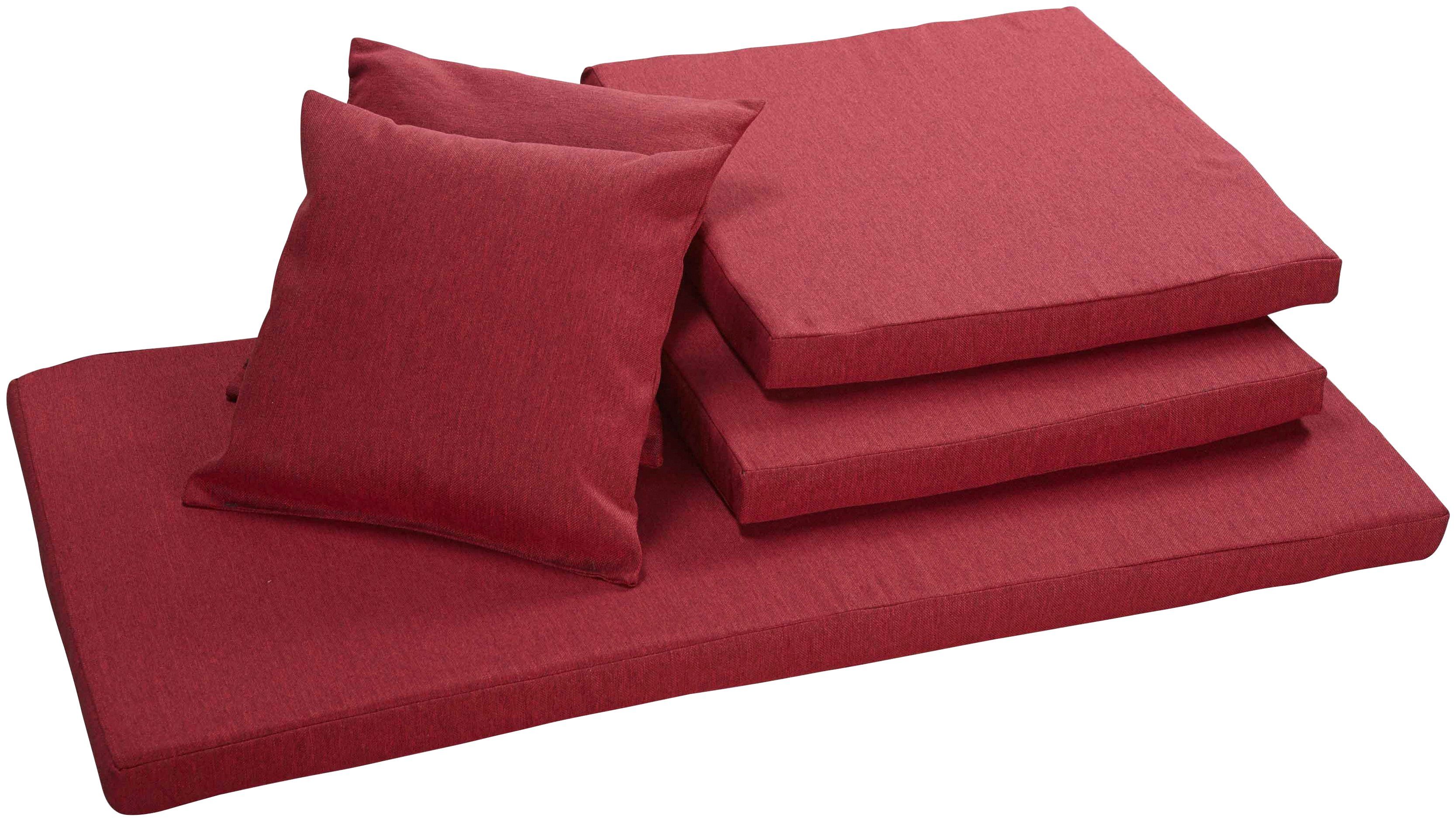 Ergänzende Maßangaben | Sesselauflage 53 x 53 cm, Zierkissen 40 x 40 cm, Bankauflage 110 x 53 cm |