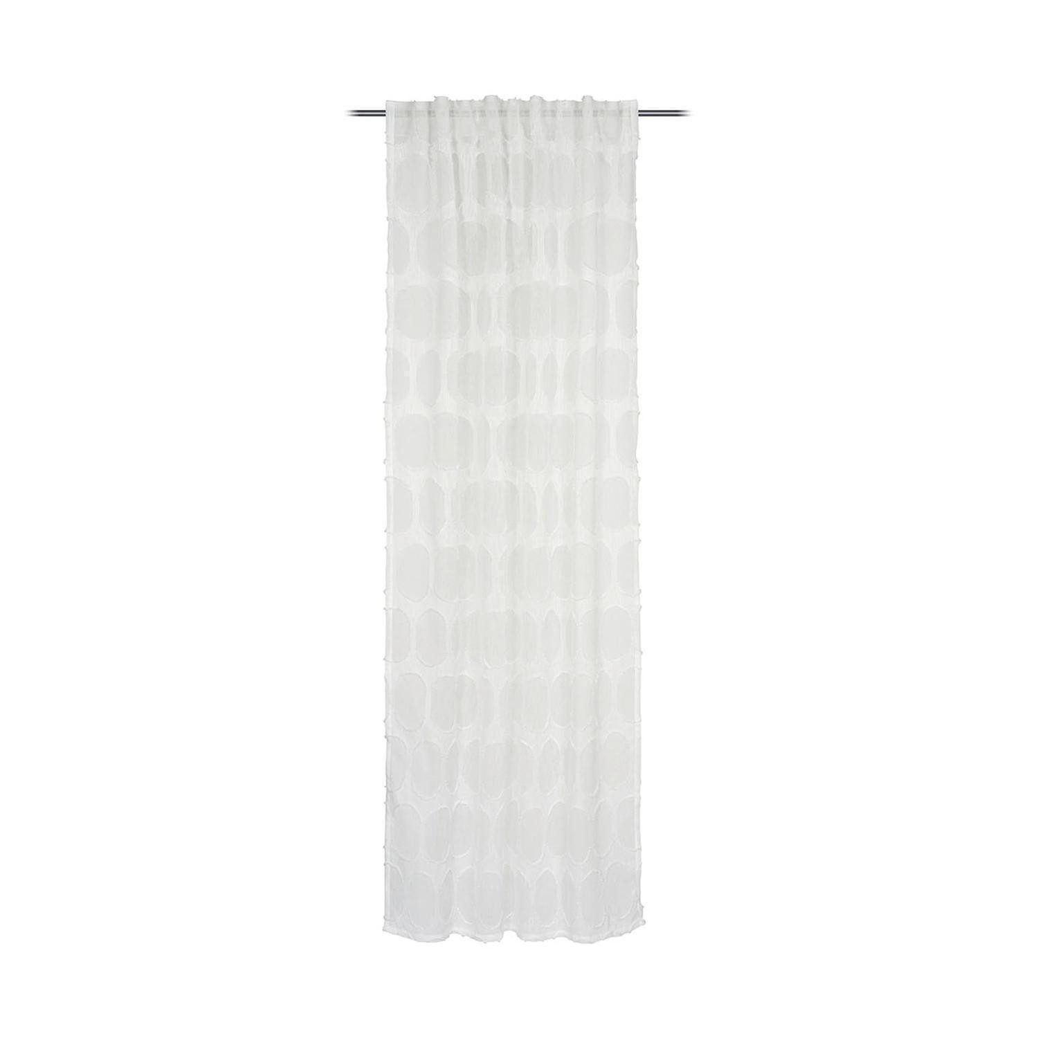 Der verdeckte Schlaufenschal LOOPING der Marke Gözze ist aus Polyester gefertigt und in der Farbe Weiß erhältlich. Er ist mit Kreisen gemustert und verfügt über verdeckte Schlaufen zur Aufhängung. Die Maße betragen 245 cm in der Довжина und 140 cm in der Breite.