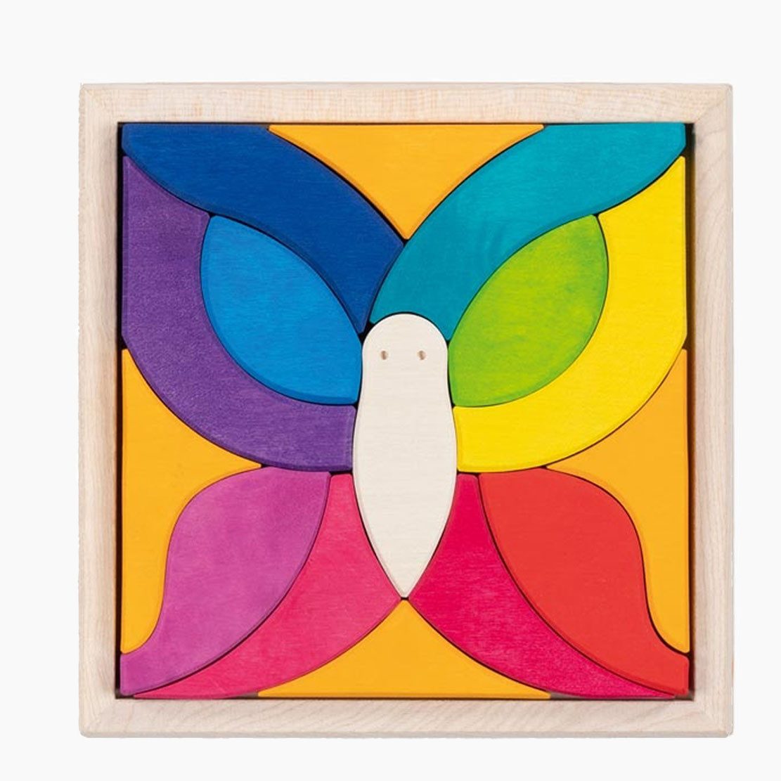 Das Baustein-Set Schmetterling Mariposa von goki evolution eröffnet Kindern ab 2 Jahren eine fantasievolle Welt aus Farben und Formen. Die elf harmonisch abgestimmten Bausteine fügen sich in einem Holzrahmen zu einem farbenprächtigen Schmetterling zusammen – doch das ist nur der Anfang. Türme, Landschaften, Tiere oder ganz eigene Figuren: Dieses Set lädt zum kreativen Entdecken ein.