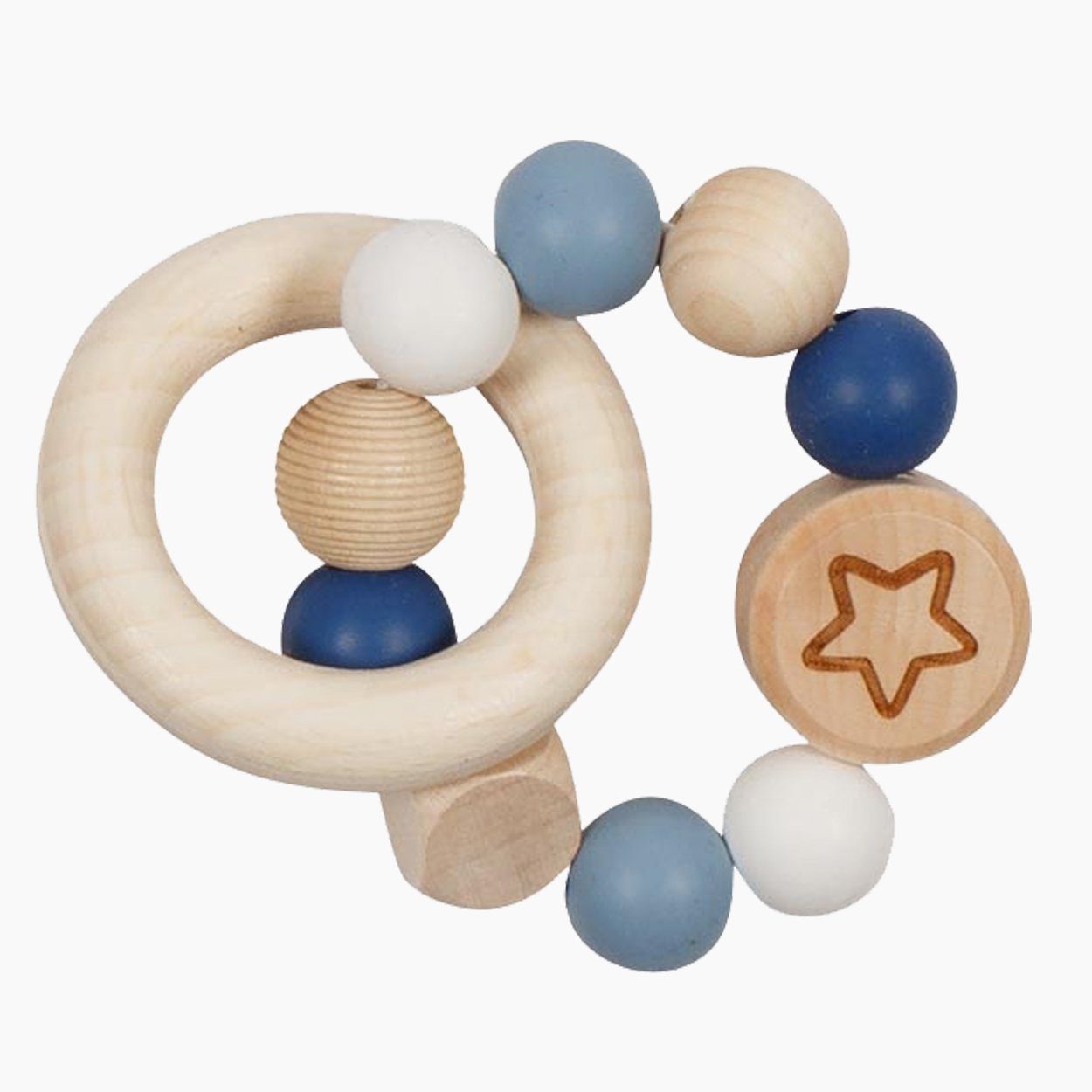 Greiflinge aus Holz und Silikon sind für Babyhände unverzichtbar. Sie lösen den Greifreflex aus und fördern die Entwicklungsprozesse zum gezielten Greifen. Dabei werden viele Sinneseindrücke vermittelt, die dem Baby helfen, seine Umwelt zu erkunden. Dieses Produkt der goki-baby-Serie enthält hochwertige Silikonperlen, sie verleihen dem Spielzeug einen zusätzlichen haptischen Reiz für die Entwicklung der Sinne. Und die Holzteile werden durch liebevolle Gravuren verziert. Das Zusammenspiel von weich und hart, von glatter und stumpfer Oberfläche fördert auch die Sprachentwicklung, denn bei der „Erkundung“ eines Gegenstandes spielen die Wahrnehmung über Zunge und Lippen eines Kindes eine nicht zu unterschätzende Rolle. - Made in Germany - Handgefertigt - Robust - Größe: 9 cm - Gewicht 0,06 kg - Material: Holz, Silikon