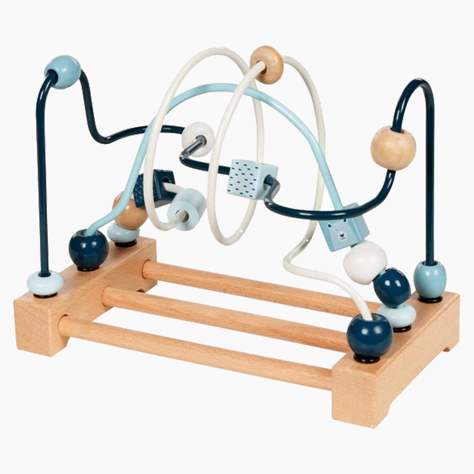 Durch das gezielte Verschieben der Holzperlen auf den Metallbahnen trainieren Kinder ihre Hand-Auge-Koordination sowie ihre feinmotorischen Fähigkeiten. Die verschiedenen Farben und Formen regen dazu an, Unterschiede zu erkennen und erste Zuordnungen vorzunehmen. Das Spielzeug lässt sich sowohl allein als auch gemeinsam mit den Eltern entdecken und fördert dabei Geduld und Konzentration.