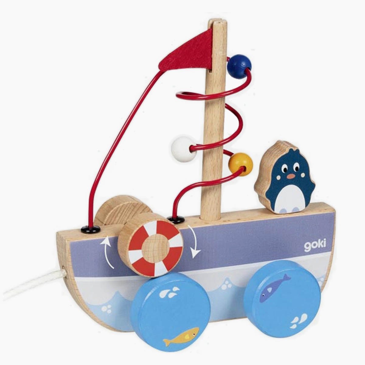 Das liebevoll gestaltete Holzschiff überzeugt mit farbenfrohen Details, einem kleinen Pinguin-Kapitän und einer beweglichen Motorikschleife. Perfekt für neugierige Kleinkinder, die erste Erfahrungen mit Koordination und Mobilität sammeln.