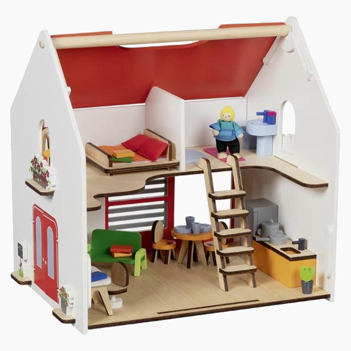 Durch die Kofferform lässt sich das Puppenhaus platzsparend verstauen und bequem transportieren. Zuhause wird es im Handumdrehen aufgebaut, und unterwegs dient es als vertraute Spieloase. Diese Kombination aus Mobilität und Spielwert ist ideal für den flexiblen Alltag mit Kindern.