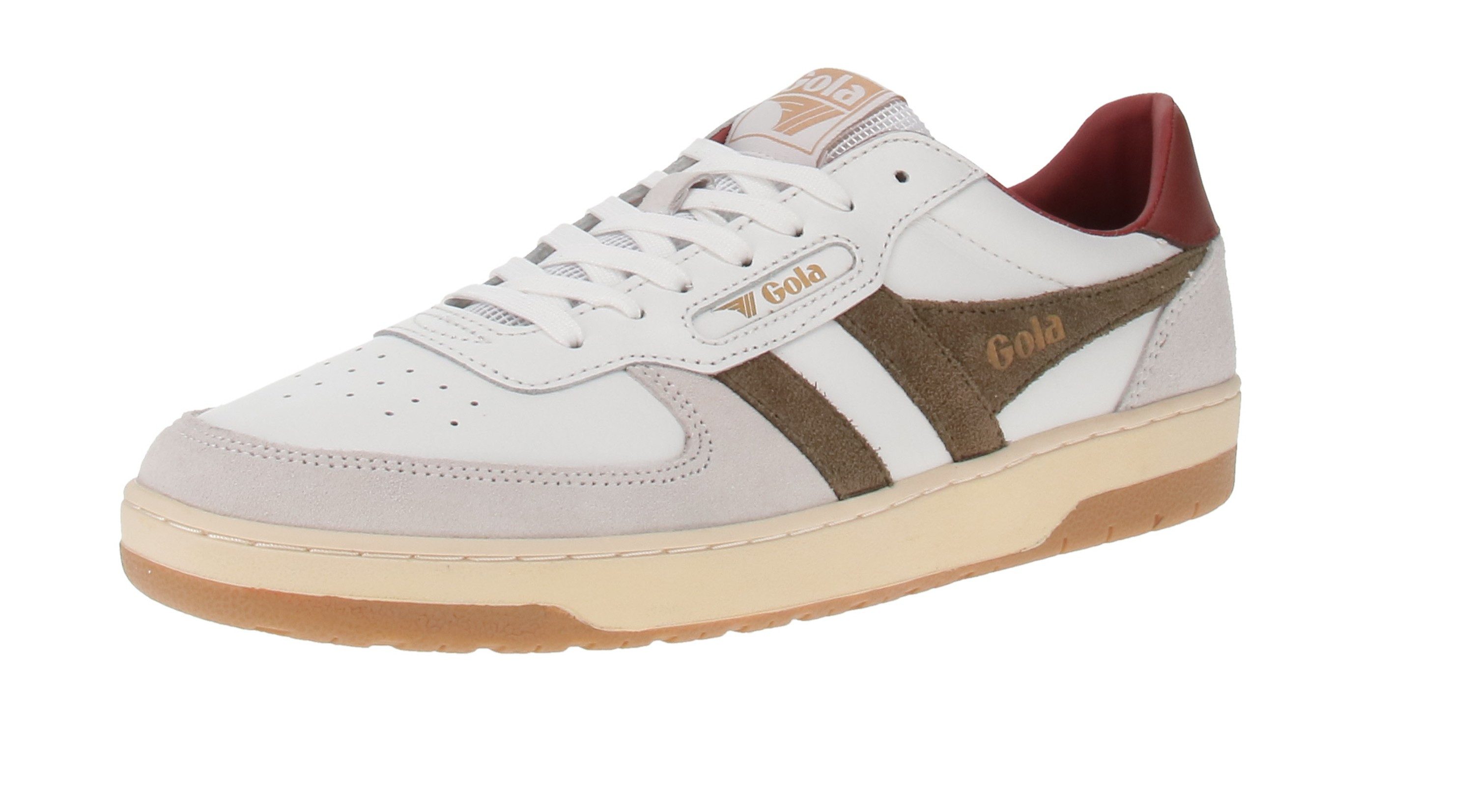 Dieser Sneaker von Gola vereint sportlichen Look mit modernen Materialien. Leder, Veloursleder und Mesh verschmelzen in einer harmonischen Farbkombination. Die robuste, zweifarbige Cupsohle sorgt für Stabilität und verleiht dem Modell seinen charakteristischen Look. Mit seinem vom klassischen Courtsport inspirierten Design vesprüht dieser Schuh authentischen Vintage-Charme und eignet sich perfekt für legere Outfits.