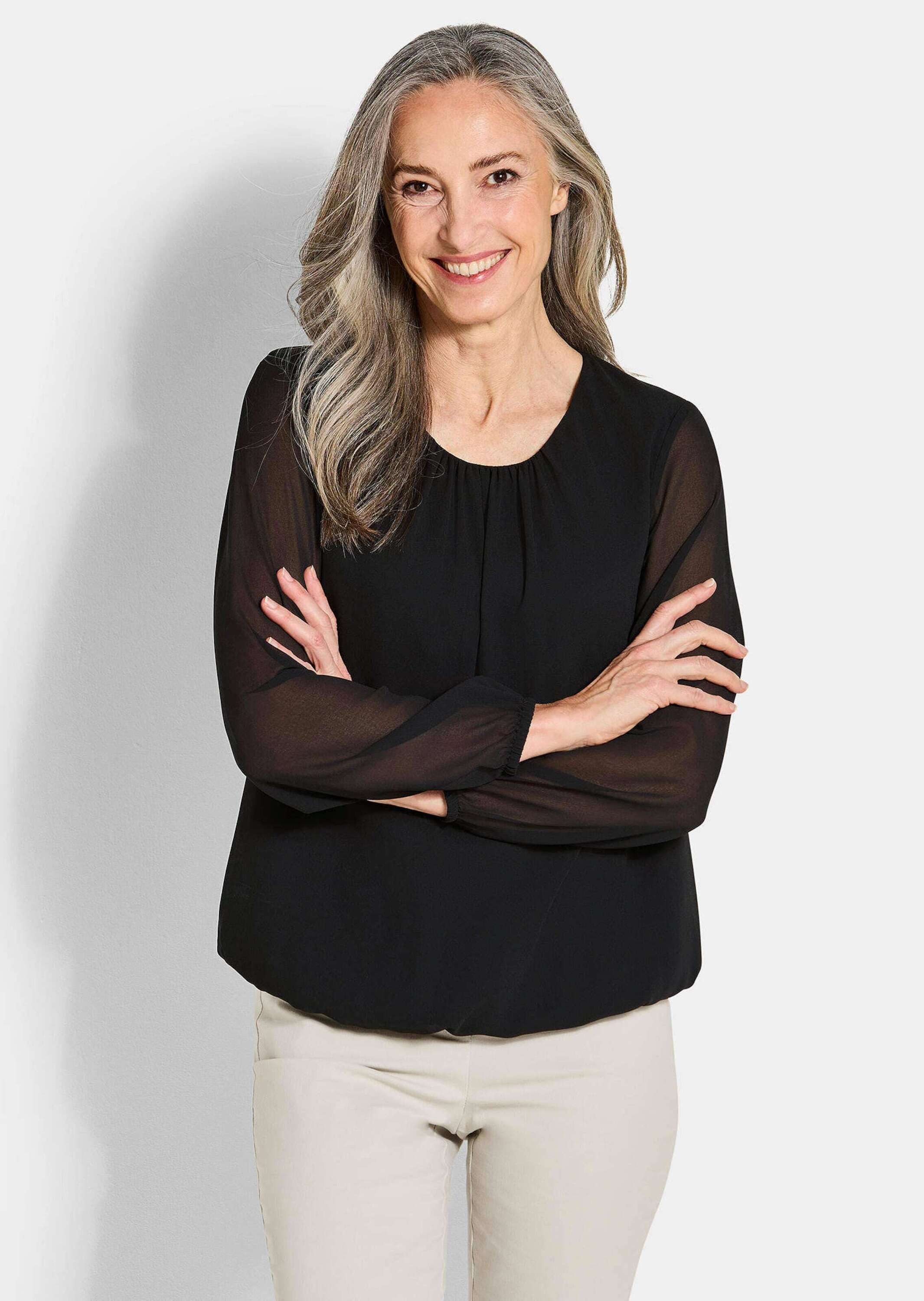 Materialzusammensetzung | Obermaterial Jersey: 60% Viskose; 35% Polyester; 5% Elasthan; Obermaterial Webware: 100% Polyester (Chiffon) |
