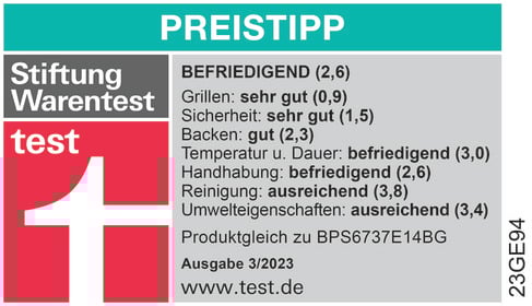 Testurteil von test (Stiftung Warentest) vom 23.02.2023, Ausgabe 3/2023, Seite 56-61: "BEFRIEDIGEND (2,6) - Produktgleich zu BPS6737E14BG"