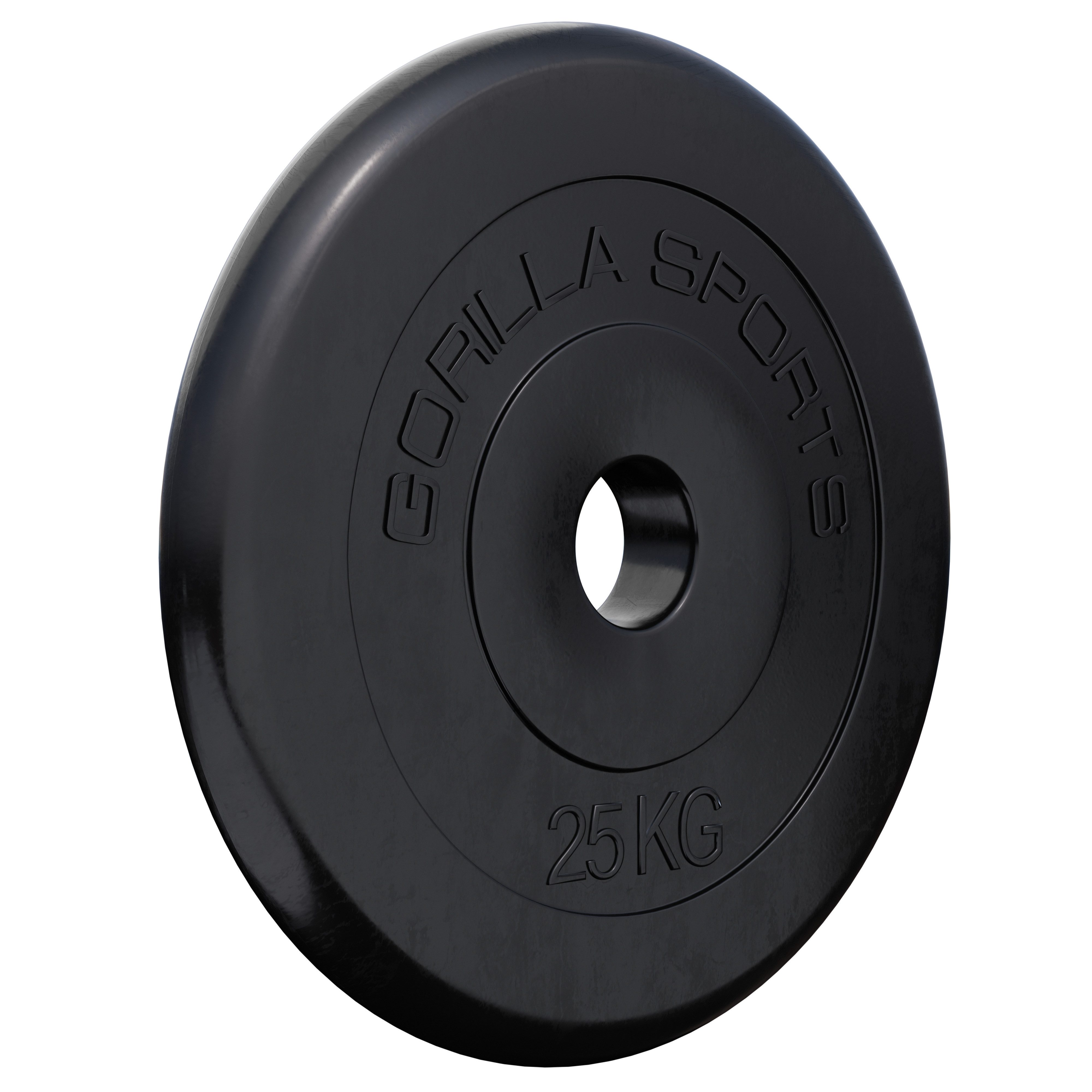 Du trainierst gerne mit voller Kraft und Dynamik? Dann sind gummierte Hantelscheiben das richtige Werkzeug für Dich. Sie besitzen einen soliden Kern aus Gusseisen, der für das nötige Gewicht und eine perfekte Stabilität sorgt. Um diesen Kern ist eine ca. 4 mm starke Gummierung angebracht. Sie dämpft den Aufschlag, wenn Du das Gewicht mit Schwung auf dem Boden ablegst oder es Dir einmal aus der Hand rutschen sollte. Beim Auflegen mehrerer Scheiben klappern diese nicht mehr, da sie mit einer Gummierung versehen sind. Du kannst leise trainieren und musst nicht bei jedem Handgriff überlegen, ob die Nachbarn oder die Familie gestört werden könnten. Außerdem beugst Du Beschädigungen des Bodens und an den Hantelscheiben selbst vor. Die Hantelscheibe mit Gummi 0,5kg, 1,25kg, 2kg, 2,5kg, 5kg, 10kg, 15kg, 20kg bis 25kg weist eine Mittelbohrung mit einem Durchmesser von 31mm auf. Sie passt damit auf Stangen mit einem Durchmesser von 30mm. Auf allen Scheiben findest Du eine Angabe zum jeweiligen Gewicht. Die Hantelscheibe gibt es in acht Ausführungen zwischen 0,5 und 25kg.