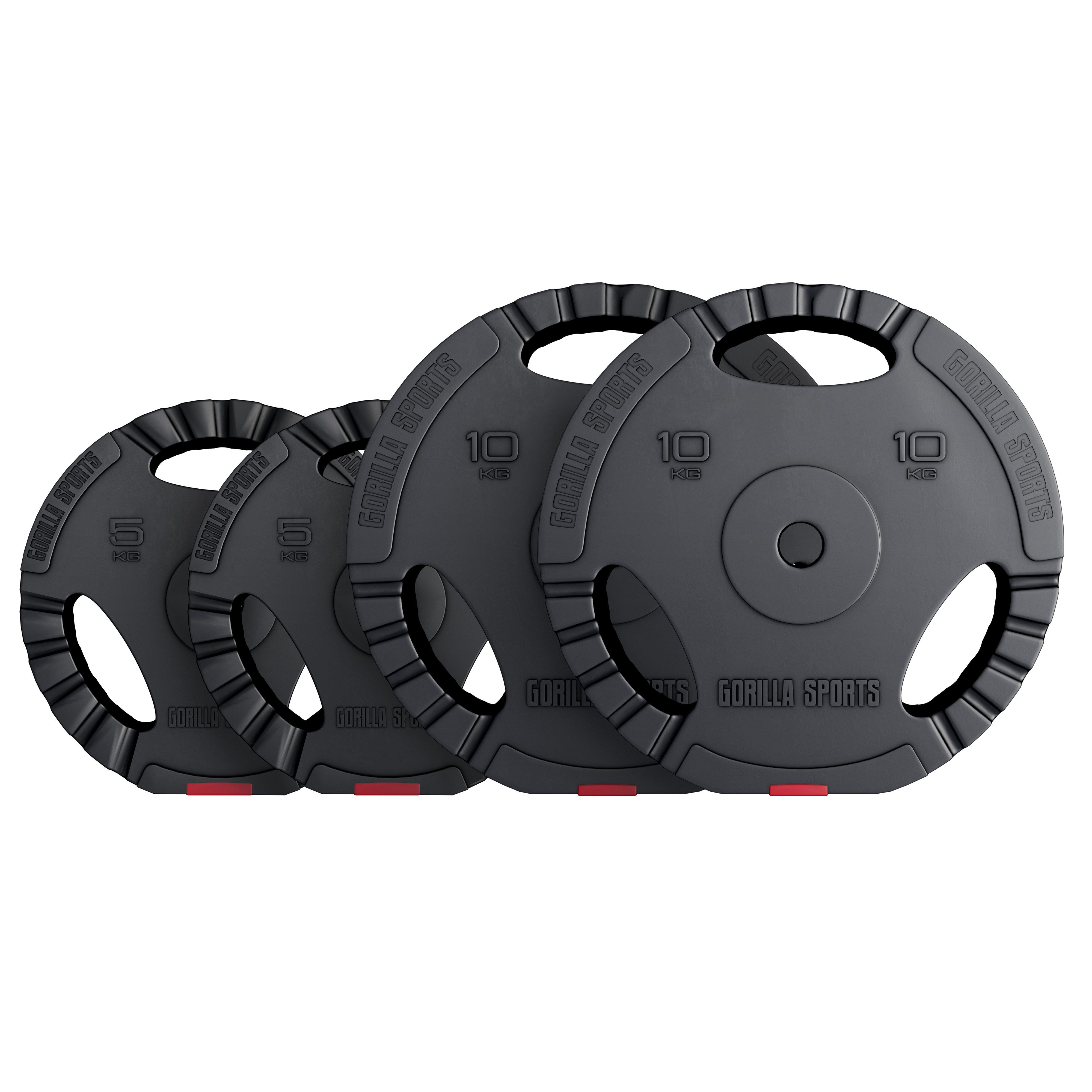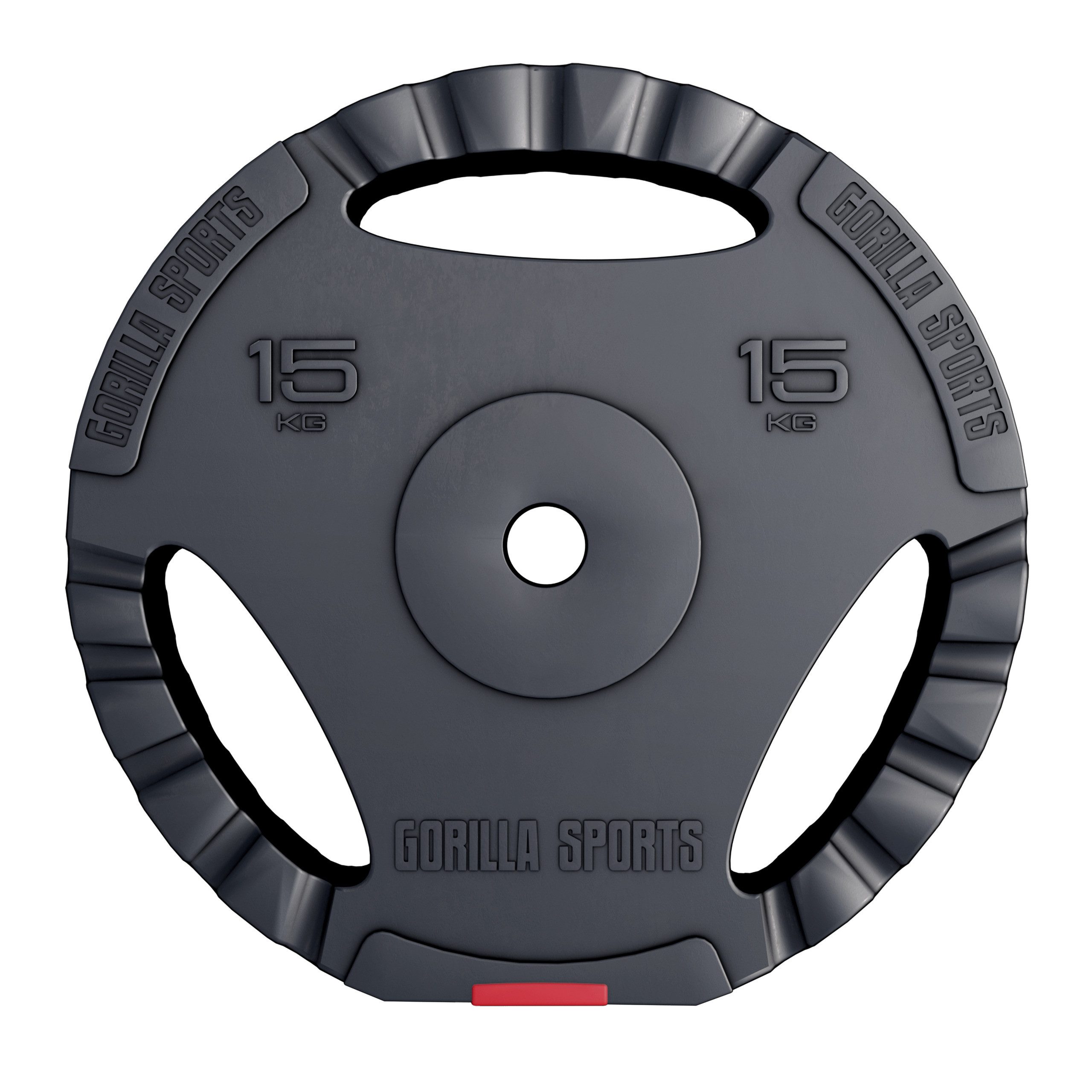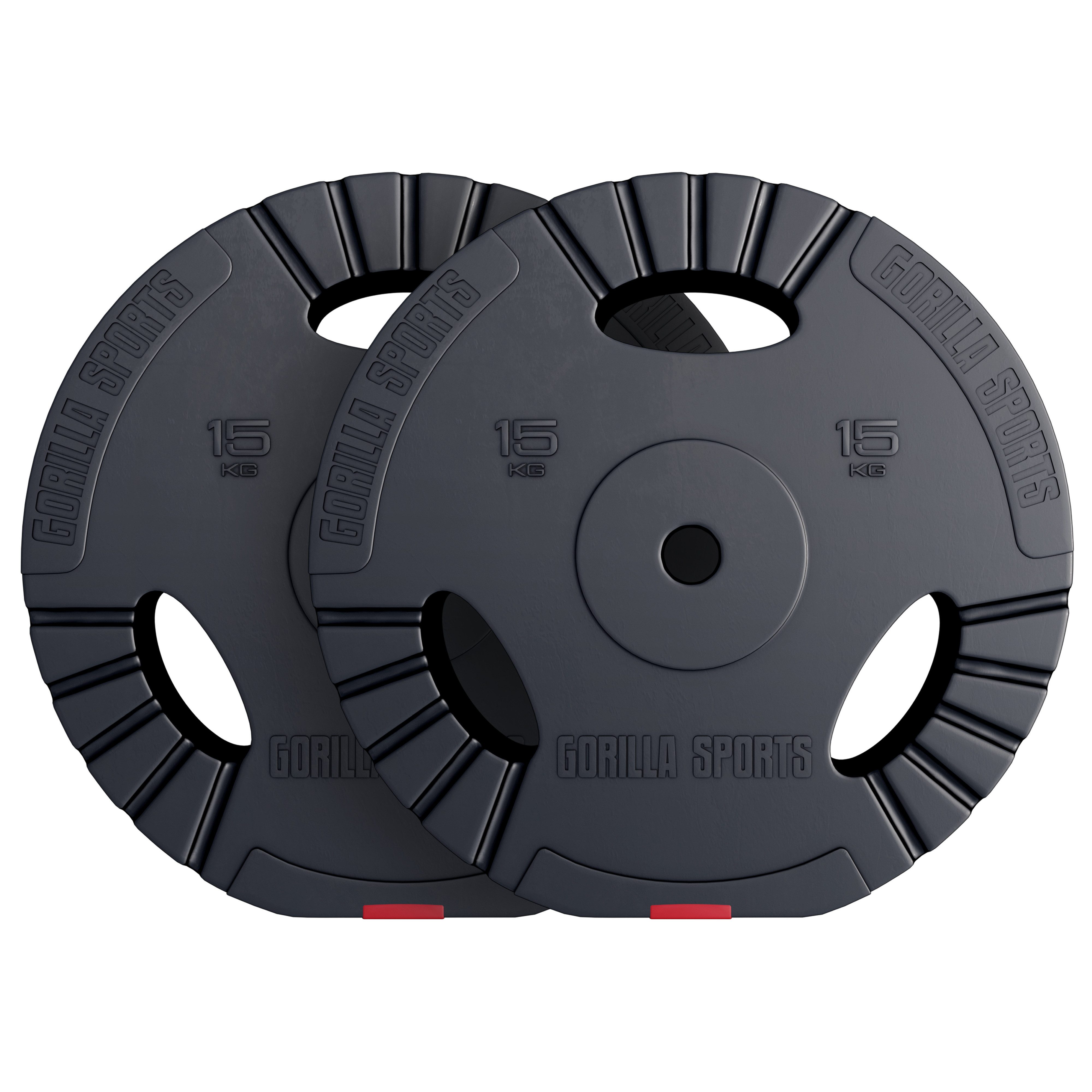 Die Hantelscheiben sind für 30/31mm Lochdurchmesser geeignet und mit dem Gorilla Sports Logo und KG-Angabe auf allen Scheiben gekennzeichnet.