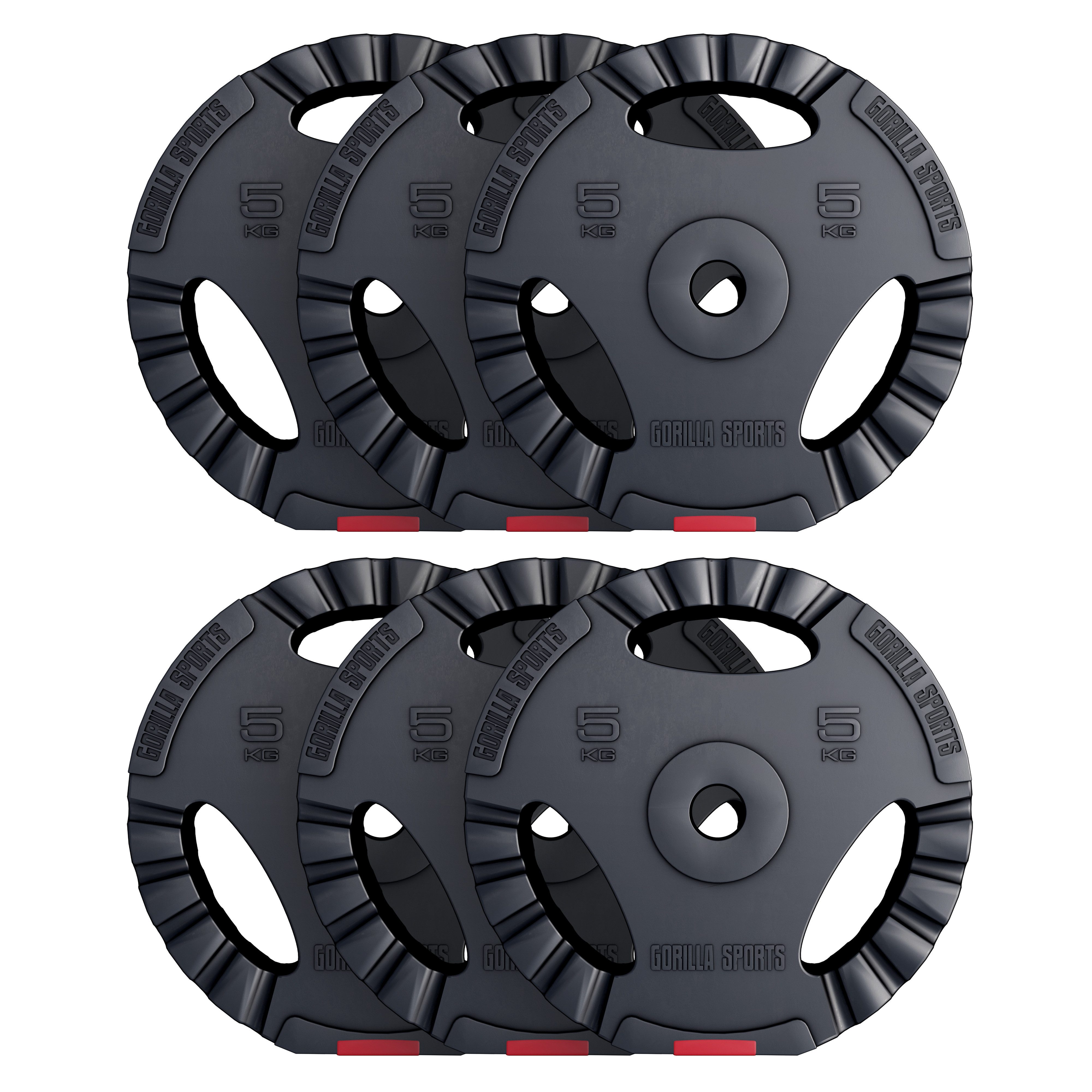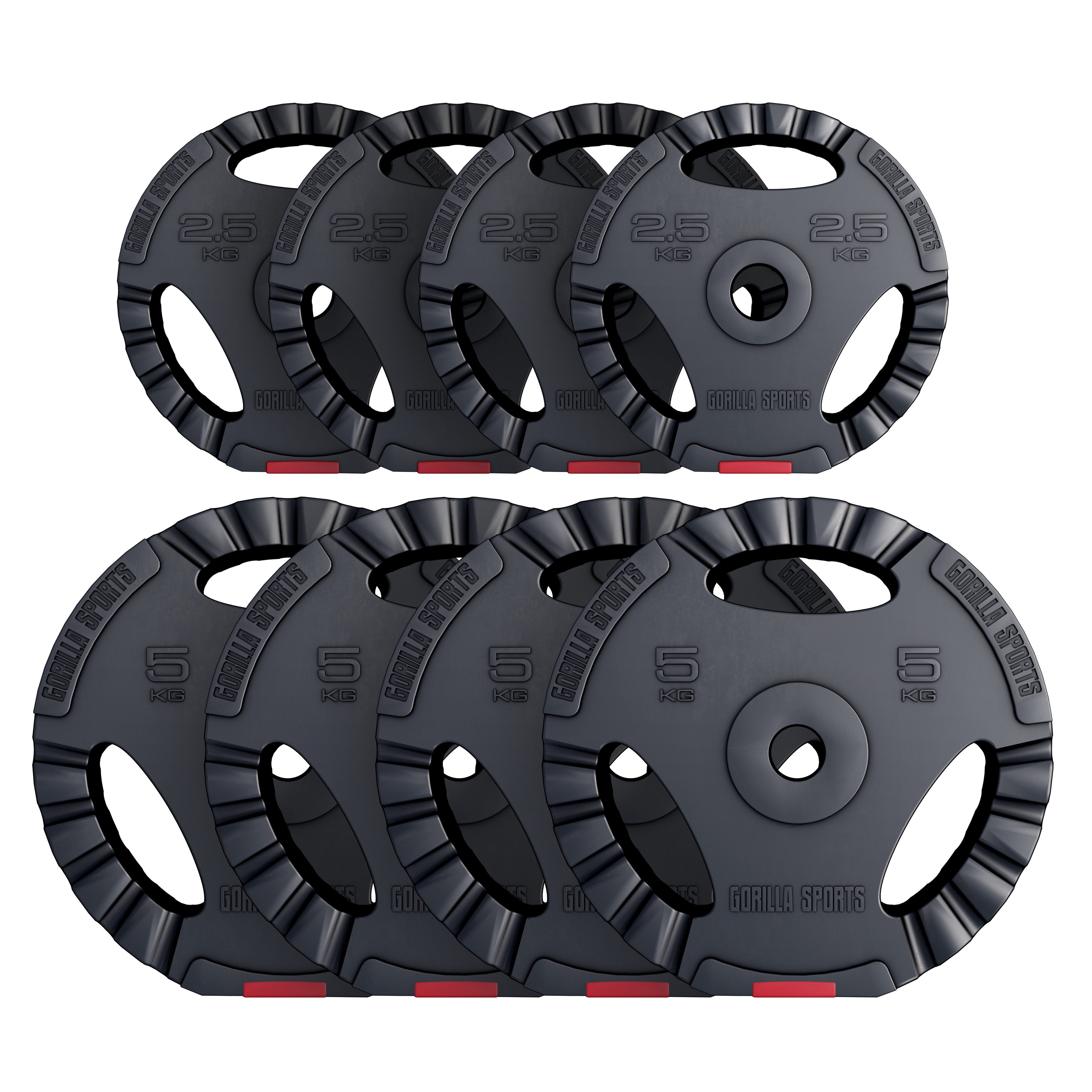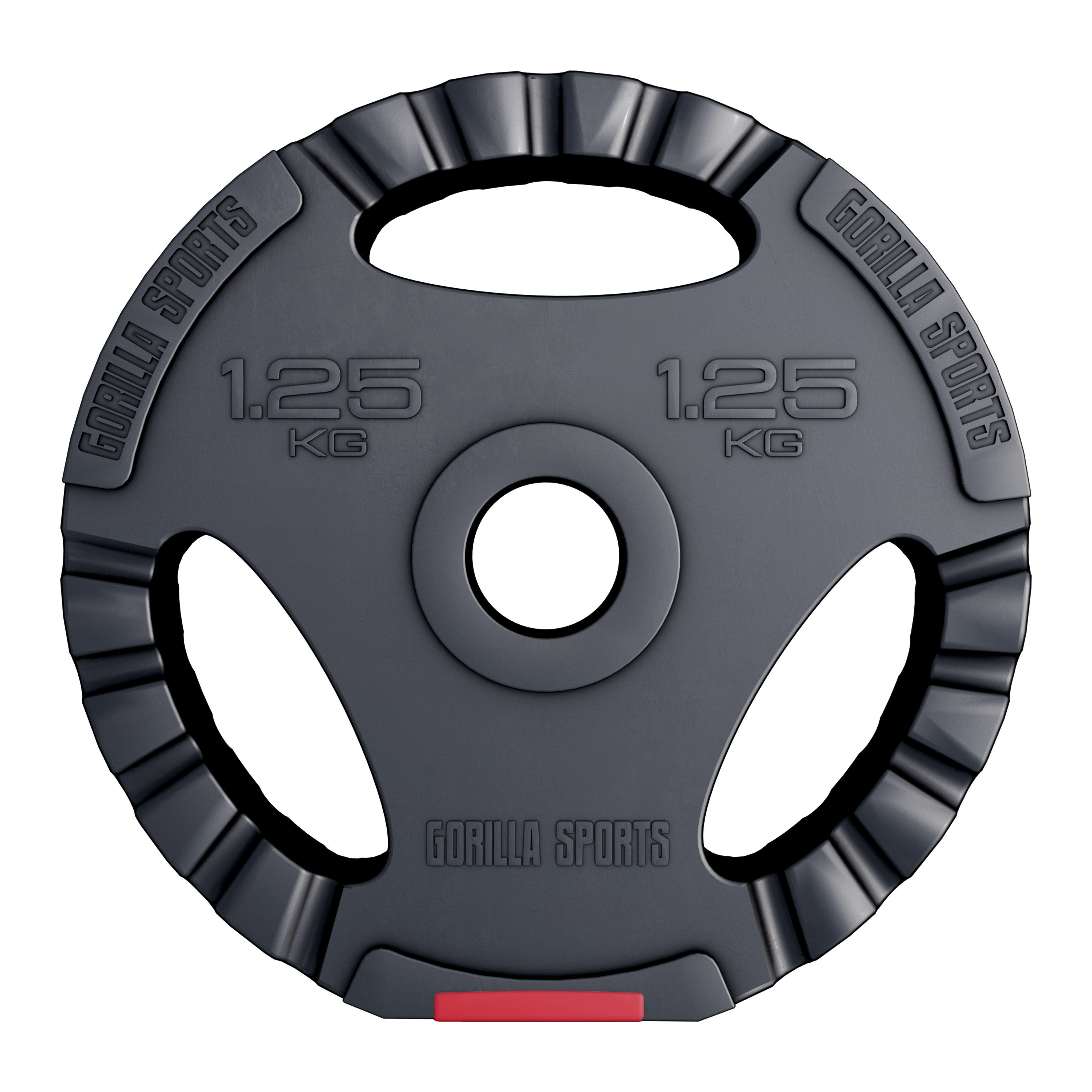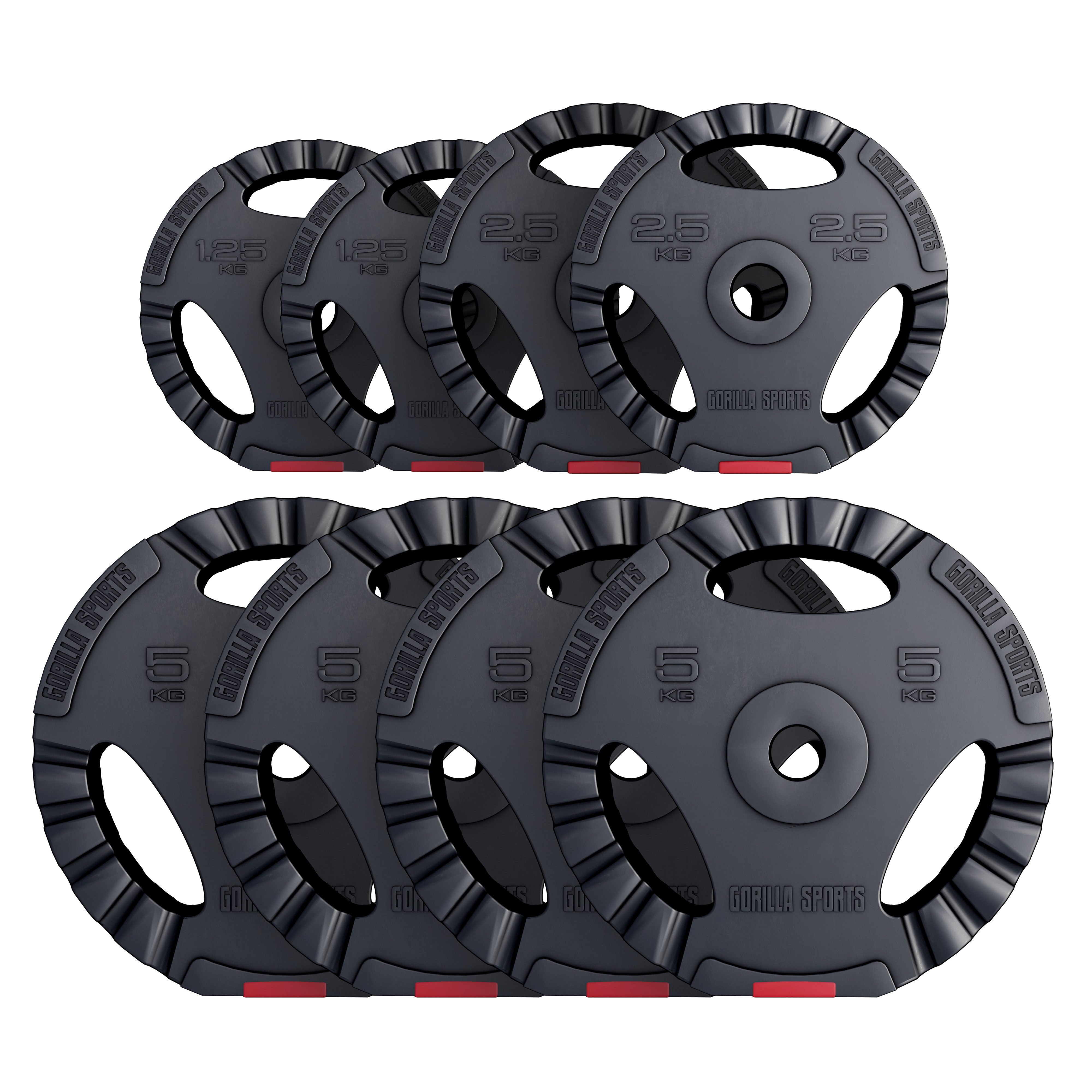 Die Hantelscheiben sind für 30/31mm Lochdurchmesser geeignet und mit dem Gorilla Sports Logo und KG-Angabe auf allen Scheiben gekennzeichnet.