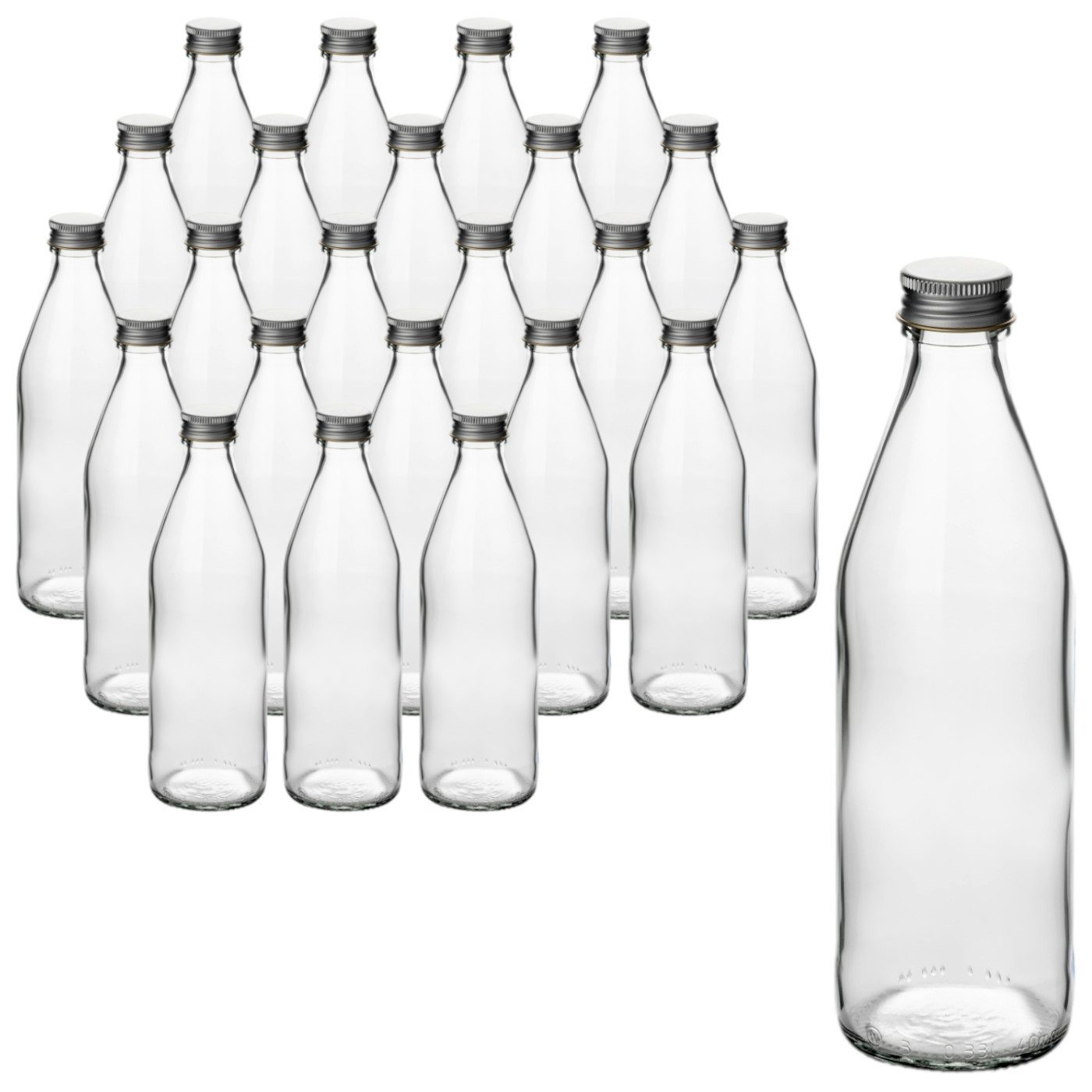 RETRO-DESIGN: Die runden Flaschen haben ein zeitloses Design. Das klare Glas und der Schraubverschluss (PP28) verleihen der Flasche eine ansprechende Note!