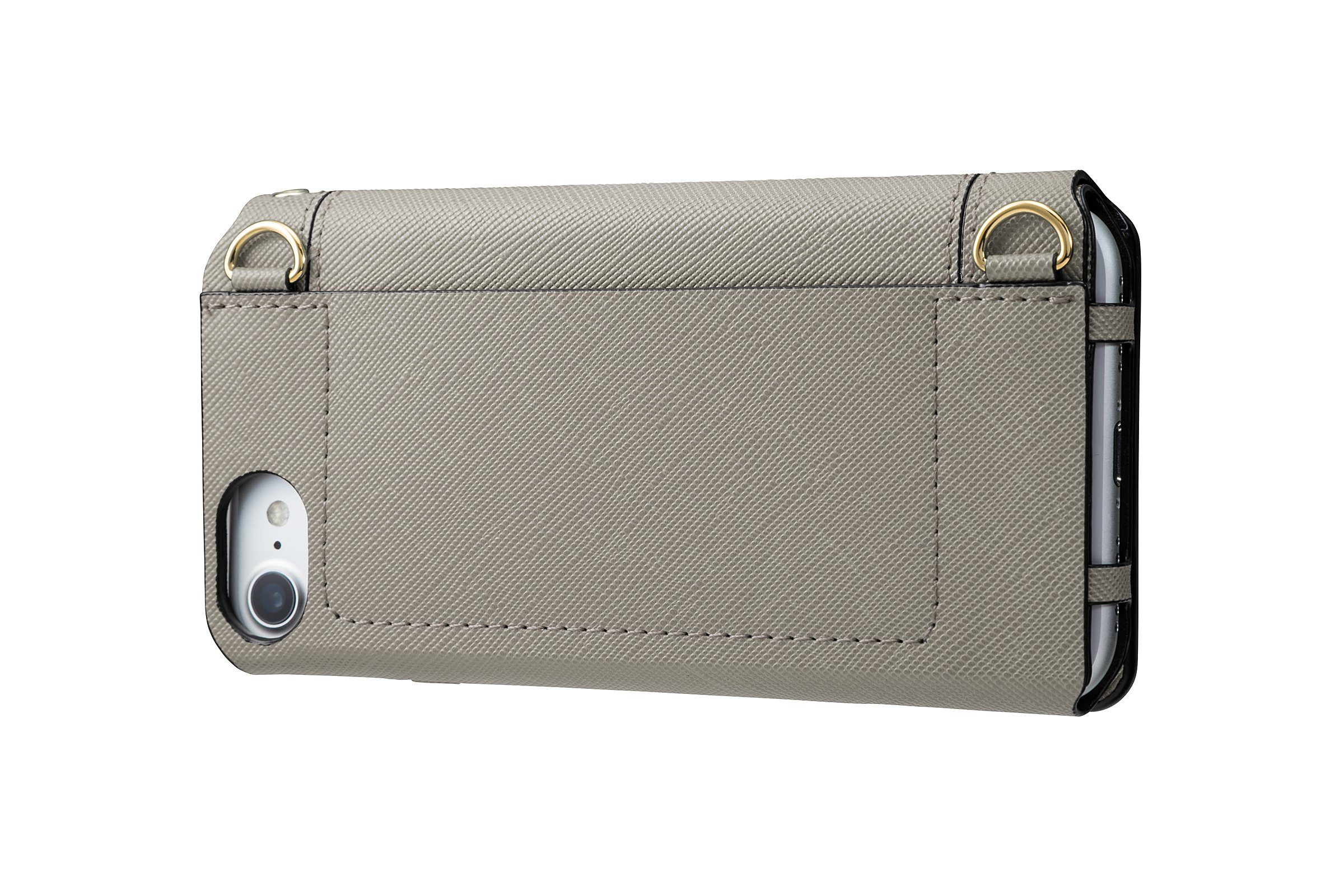 Tragen Sie Ihr iPhone 8, iPhone 7 oder iPhone 6S/6 mit Style in dieser eleganten Kunstleder-Tasche von GRAMAS. An das Flipcase können Sie eine 120 cm lange Kette sowie einen Anhänger anbringen, sodass die Handyhülle im Handumdrehen zu einer stylishen Tasche und somit zu einem Fashion-It-Piece wird. Während Sie die Hülle zum Beispiel auf dem Weg zum Restaurant als Tasche tragen, haben Sie die Hände frei. Ihr iPhone ist in diesem Flipcase sicher vor Kratzern und leichten Stößen aufbewahrt. Im Inneren dieser Handytasche können Sie zum Beispiel Ihre Kreditkarte oder eine andere Karte verstauen und so immer griffbereit haben, ohne Ihre Brieftasche oder Geldbörse herausholen zu müssen. Ein spezieller, von Sakamoto Radio entwickelter „Ripple“-Mechanismus sorgt dafür, dass die Karte nicht herausrutscht. An der Rückseite der Tasche befindet sich ein schmales Fach, in dem Sie Geld oder Tickets verstauen können.