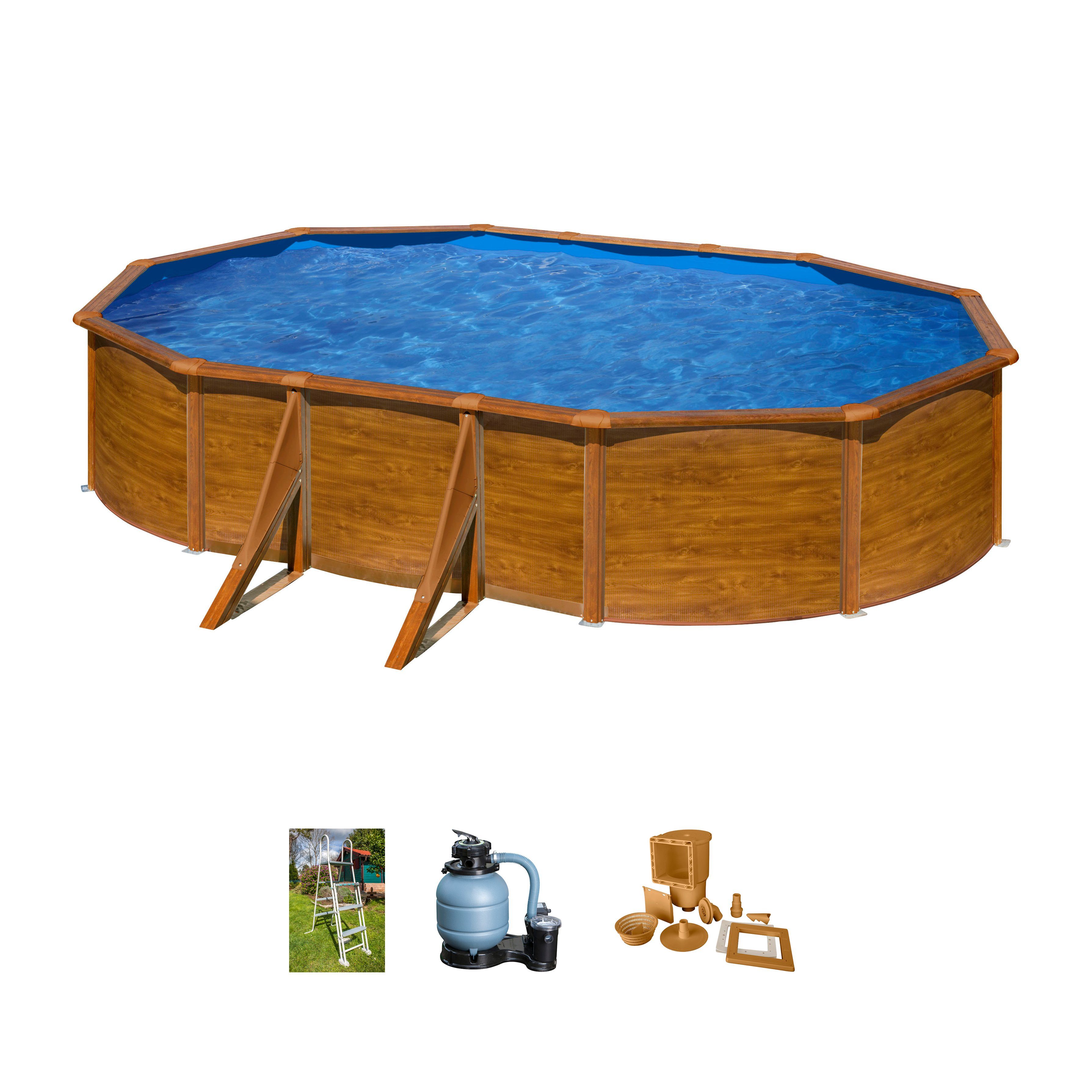 Die vorgeformte und farblich passende, je nach Modell, graue oder blaue PVC-Innenhülle ist dank ihrer Anti-UV-Behandlung und der hohen Materialstärke äußerst langlebig und legt sich von innen optimal an die Poolstruktur. Eine Sicherheitsleiter sorgt zugleich für einen sicheren und angenehmen Einstieg in den Pool und verhindert bei Nichtverwendung des Pools unerwünschten Zutritt. Vervollständigt wird der umfangreiche Lieferumfang, je nach Modell, durch eine passende Kartuschen- oder Sandfilteranlage inklusive des benötigten Filtermediums, eine kraftvolle Pumpe, ein Skimmerset, ein Bodenschutzvlies und falls erforderlich ein zusätzliches Befestigungssystem oder außenliegende Seitenstützen.