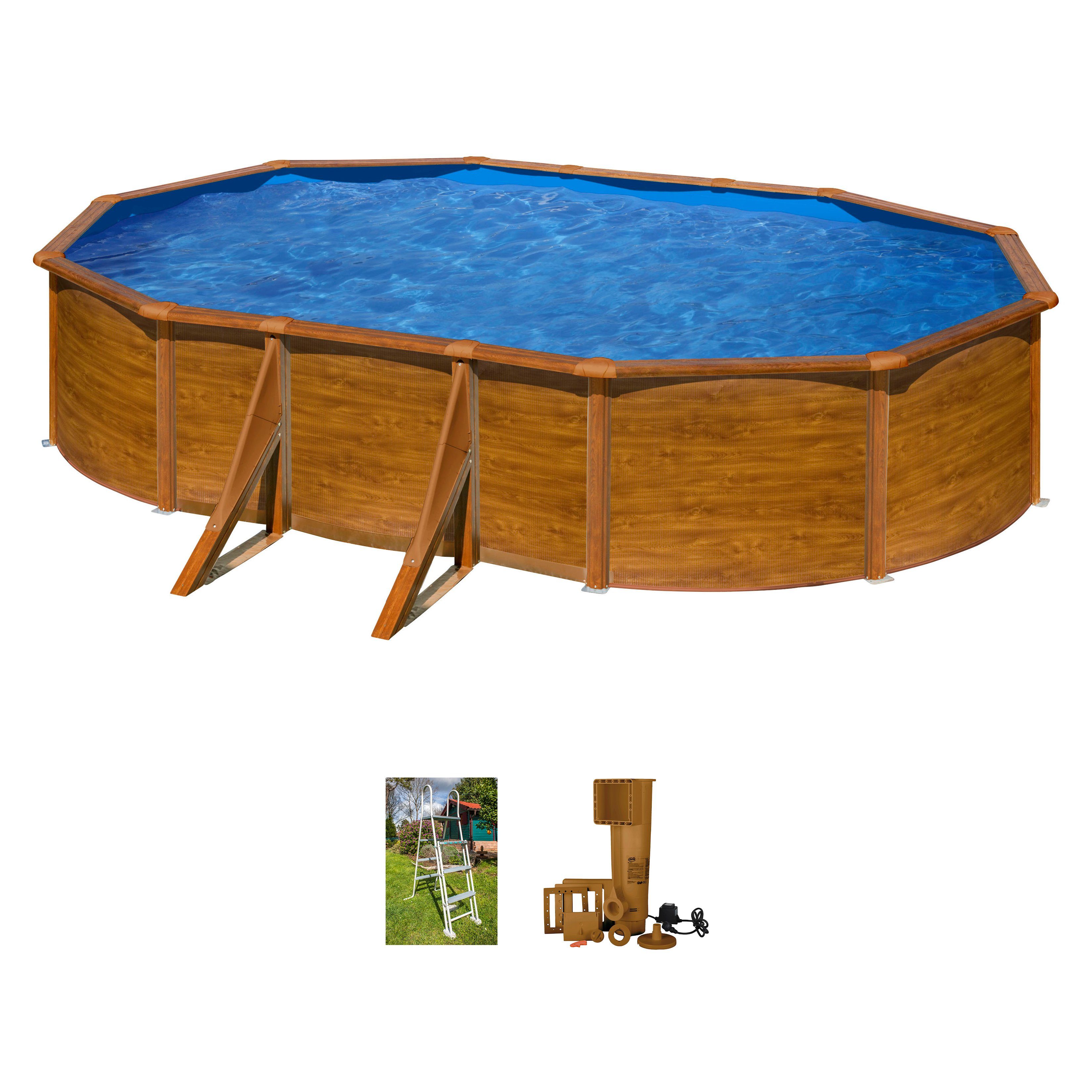 Die vorgeformte und farblich passende, je nach Modell, graue oder blaue PVC-Innenhülle ist dank ihrer Anti-UV-Behandlung und der hohen Materialstärke äußerst langlebig und legt sich von innen optimal an die Poolstruktur. Eine Sicherheitsleiter sorgt zugleich für einen sicheren und angenehmen Einstieg in den Pool und verhindert bei Nichtverwendung des Pools unerwünschten Zutritt. Vervollständigt wird der umfangreiche Lieferumfang, je nach Modell, durch eine passende Kartuschen- oder Sandfilteranlage inklusive des benötigten Filtermediums, eine kraftvolle Pumpe, ein Skimmerset, ein Bodenschutzvlies und falls erforderlich ein zusätzliches Befestigungssystem oder außenliegende Seitenstützen.