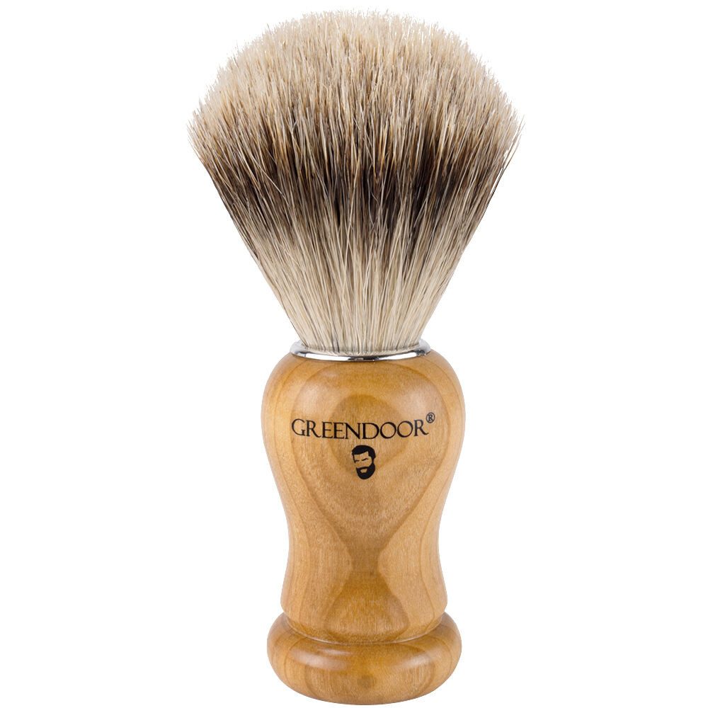 Handgedrechselter Rasierpinsel aus heimischen Obstgehölz und edlem extra feinem Dachszupf - aus einer kleinen bayerischen Manufaktur.