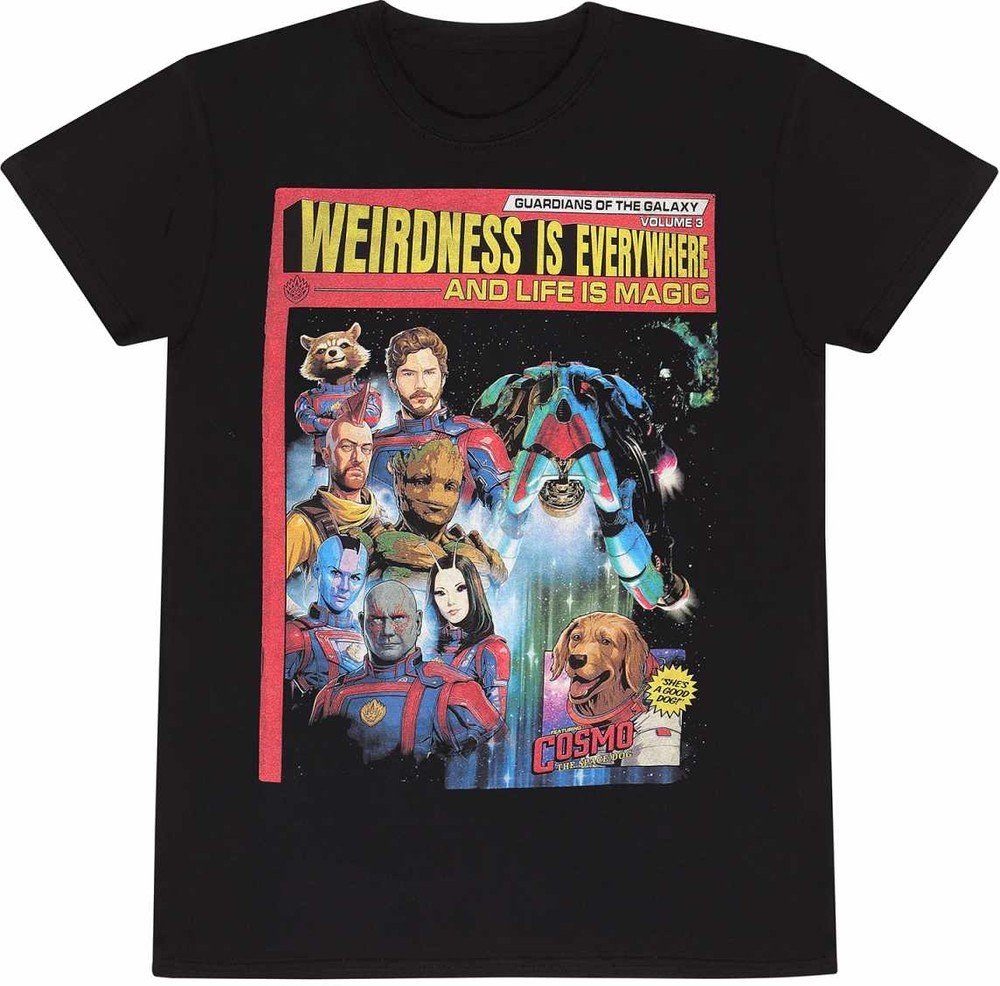 Das Guardians Of The Galaxy Vol 3 - Guardians Magazine T-Shirt ist ein Must-Have für alle Fans der beliebten Filmreihe. Das T-Shirt besticht durch sein einzigartiges Design, das von den Guardians Of The Galaxy Comics inspiriert ist. Es zeigt die bekannten Charaktere in einem dynamischen und farbenfrohen Stil, der sofort ins Auge fällt. Das T-Shirt besteht aus hochwertiger Baumwolle, die für ein angenehmes Tragegefühl sorgt und gleichzeitig strapazierfähig ist. Es ist in verschiedenen Größen erhältlich, um sicherzustellen, dass jeder Fan die passende Розмір findet. Das Guardians Of The Galaxy Vol 3 - Guardians Magazine T-Shirt ist perfekt für den Alltag, für Freizeitaktivitäten oder auch für besondere Anlässe geeignet. Mit diesem T-Shirt kannst du deine Leidenschaft für die Guardians Of The Galaxy Filmreihe zum Ausdruck bringen und gleichzeitig einen coolen und trendigen Look kreieren. Es ist ein absolutes Must-Have für jeden Fan und ein tolles Geschenk für Freunde und Familie. Hol dir jetzt das Guardians Of The Galaxy Vol 3 - Guardians Magazine T-Shirt und zeige der Welt, dass du ein echter Fan bist.