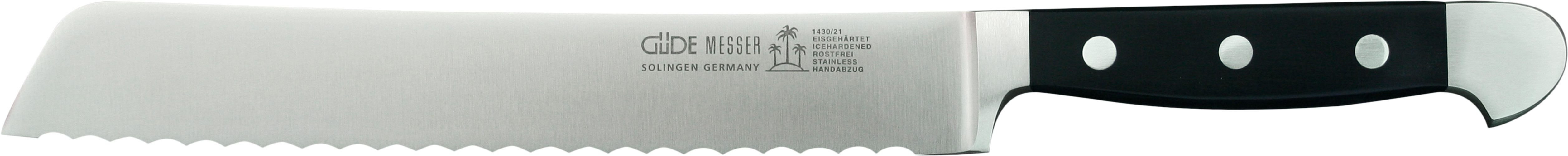 An das Klingenmaterial von Messern sind eine Fülle von Anforderungen zu stellen, die sich zum Teil widersprechen. Also gilt es, ein Optimum zwischen den verschiedenen Anforderungen zu realisieren. So soll ein Messerstahl hart sein, jedoch nicht zu hart, da er ansonsten brechen würde. Er soll aber auch nicht zu weich sein, da das Messer sonst durch Abnutzung zu schnell stumpf werden würde. Daher sind die Messer der Serie Alpha von GÜDE aus einem Chrom- Molybdän-Vanadium-Messerstahl gefertigt, der eine optimale Härte von ca. 57-58 HRc (Rockwell) hat.
