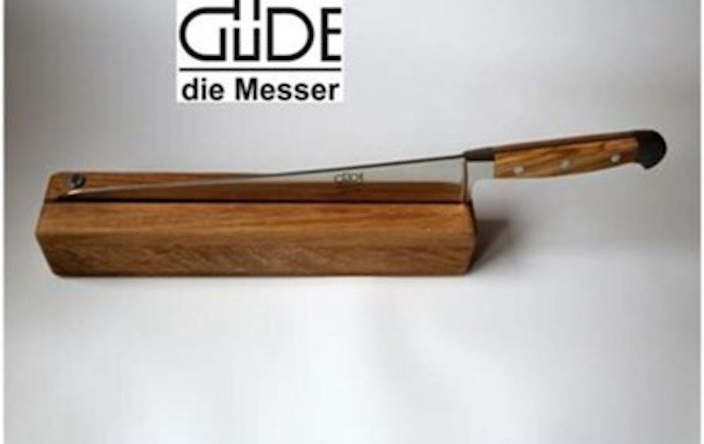 Güde Brotmesser, geschmiedet, Serie Alpha-Olive Klingenlänge 32 cm Artikelnummer: 7431/32 mit Messerblock aus Eiche Die Klingen sind handgeschmiedet und bestehen aus einem Stück Chrom-Vanadium-Molybdän Messerstahl. Die Впередverarbeitung erfolgt in über 40 manuellen Arbeitsgängen. Die Griffschalen bestehen aus bis zu 500 Jahre altem und ausgesuchtem Olivenholz, welches sehr hart, witterungsfest, stark gemasert und dadurch besonders elegant ist. Die Klinge ist rostfrei, eisgehärtet und handgeschärft – der Griff ist nicht spülmaschinengeeignet. Das Brotmesser wird mit einem Messerhalter aus massiver Eiche geliefert. Damit schützen Sie Ihr Brotmesser ideal. Sie haben Ihr Güde Messer nicht in unserem Shop gefunden? Dann melden Sie sich bitte bei uns. Wir können Ihnen weiterhelfen! Ein Güde Messer sollte man sich gönnen.